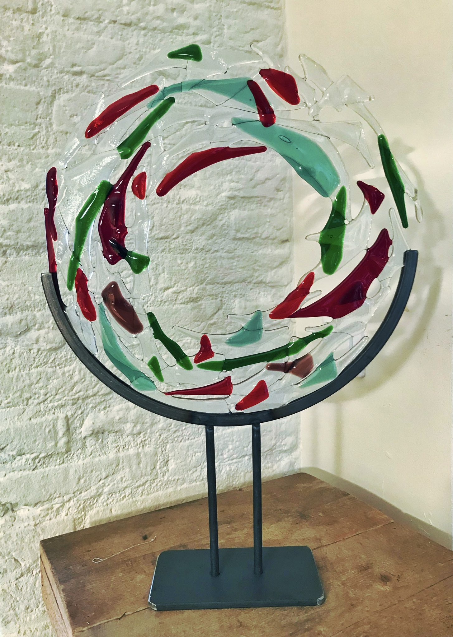 Ik heb jarenlang gewerkt met klei, hout, steen en brons, en de laatste drie jaar heb ik me meer en meer toegelegd opglasfusing.