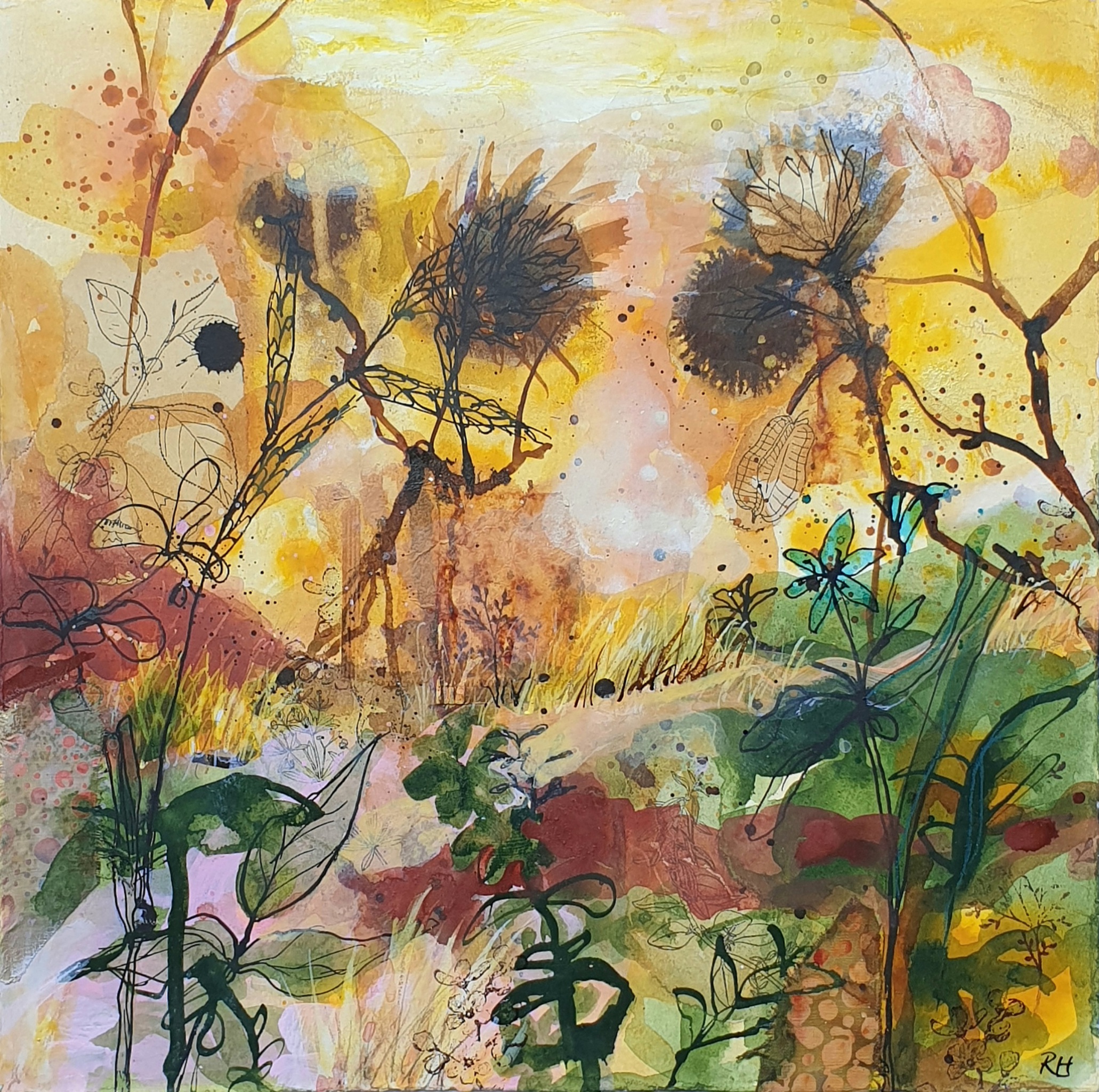 Natuur Geel Planten Abstract Mixed Media Papier