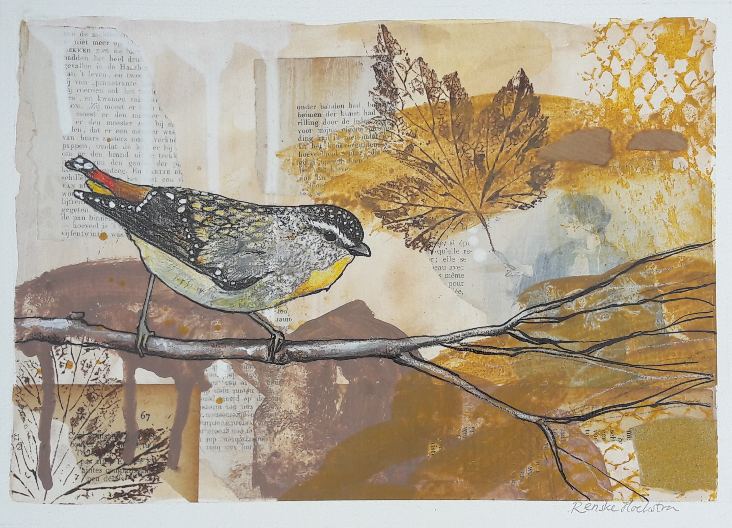 Mixed Media Papier Vogel Puttertje Lyrisch