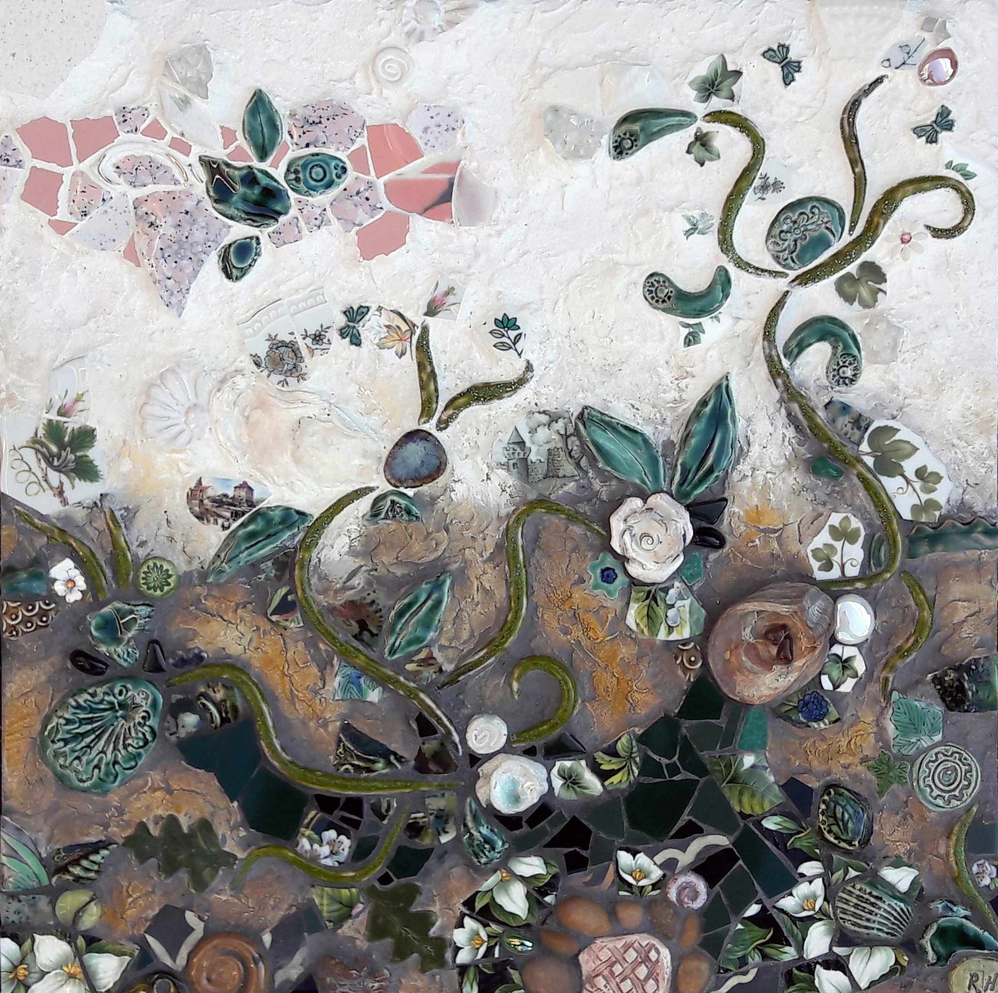 Schilderij Abstract Paneel Natuur Mozaïek Keramiek Scherven
