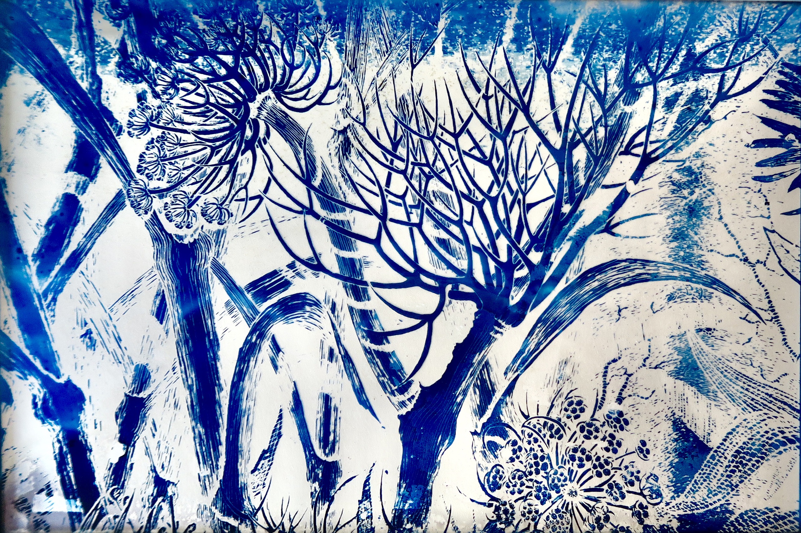 Cyanotipie gemaakt met gebruik van een oude tekening