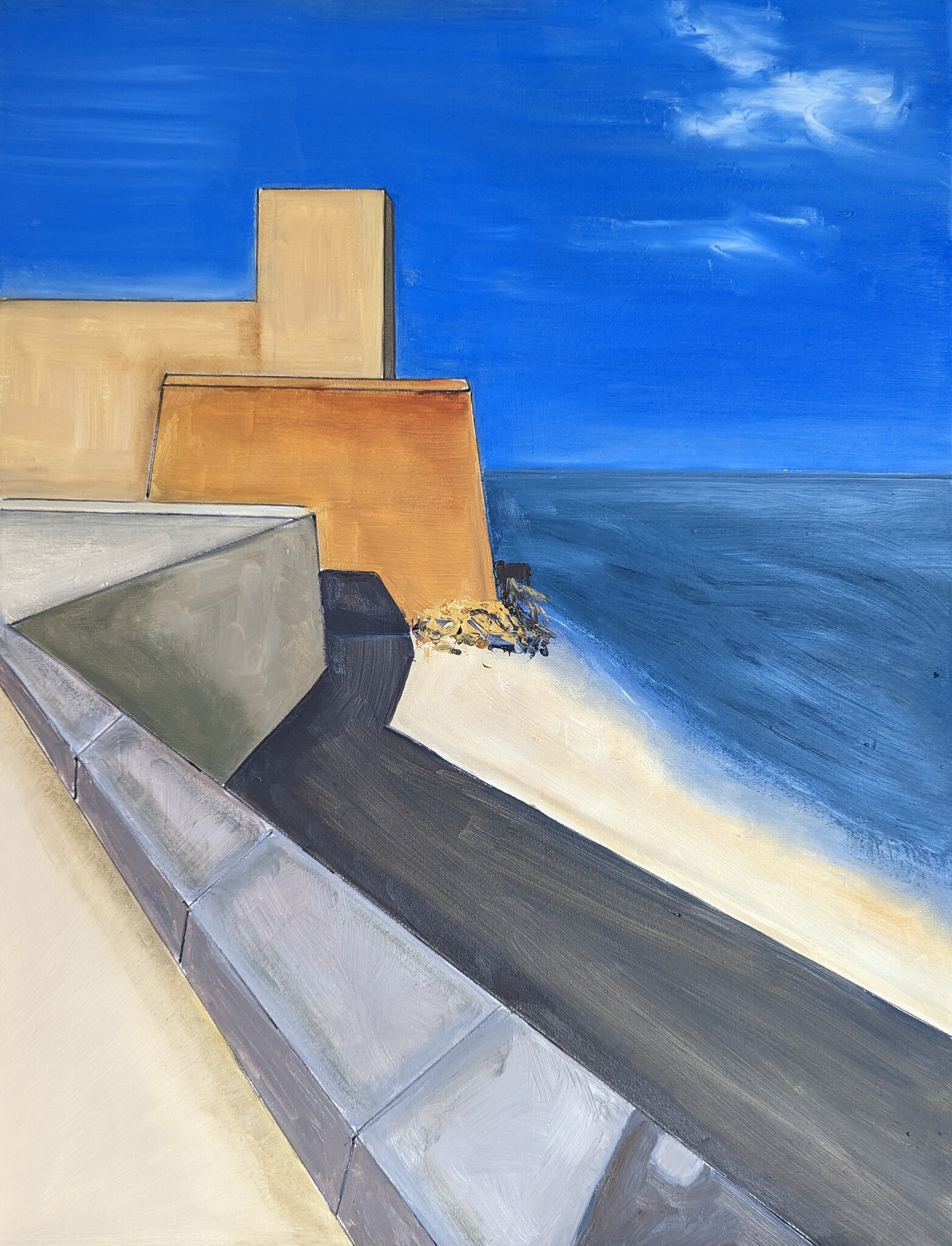 Mijn interesse gaat uit naar vlakken en lijnen van waaruit de wereld om ons heen is opgebouwd. Door deze zichtbaar te maken ontstaan er figuratieve schilderijen die in hoge mate vervreemdend werken.