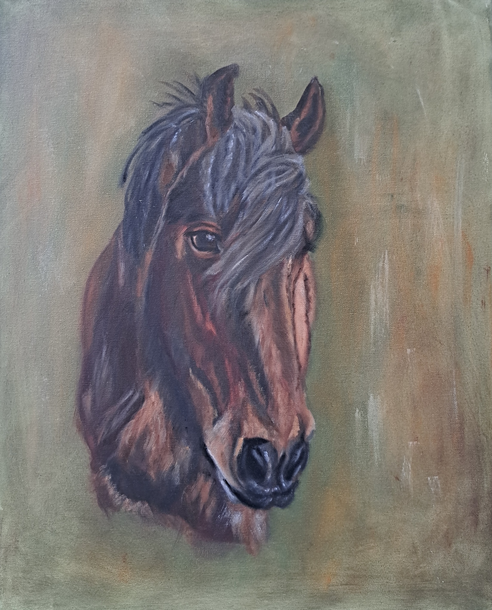 Belgische knol. Mario is onderdeel van een kleine kudde. Geschilderd en geplaatst met toestemming en fotomateriaal van de eigenaars. Olieverf op canvas doek.