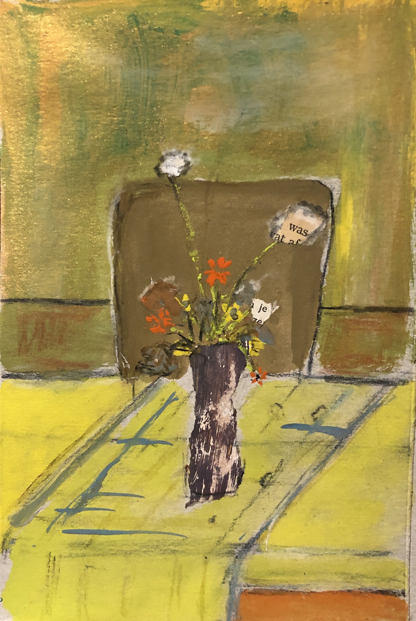 Geel Goud Bloemen Vaas Stoel Collage Tafel