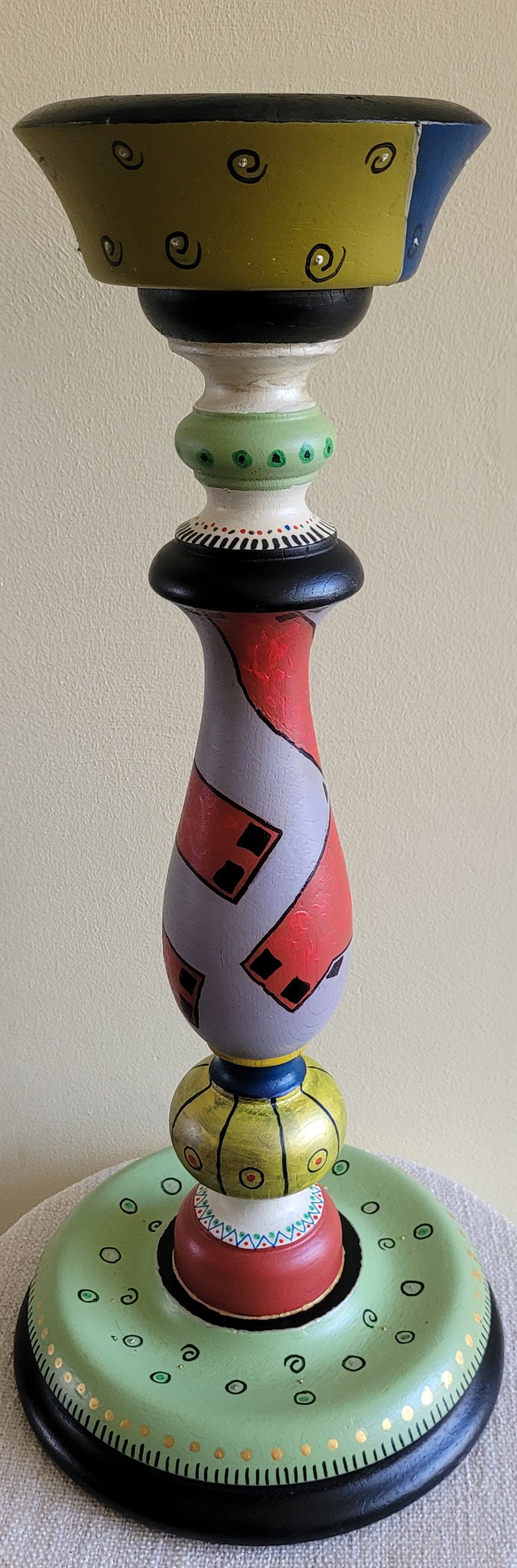 Een kaarsenstandaard, omgewerkt naar een kunstig werkje.