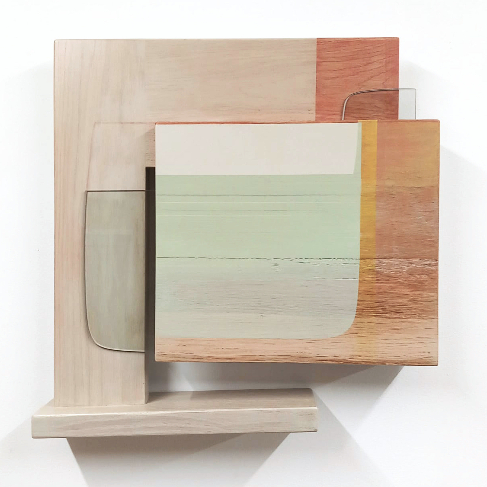 "Maak de wereld groter door hem kleiner te maken". Wandobjecten van hout, glas........