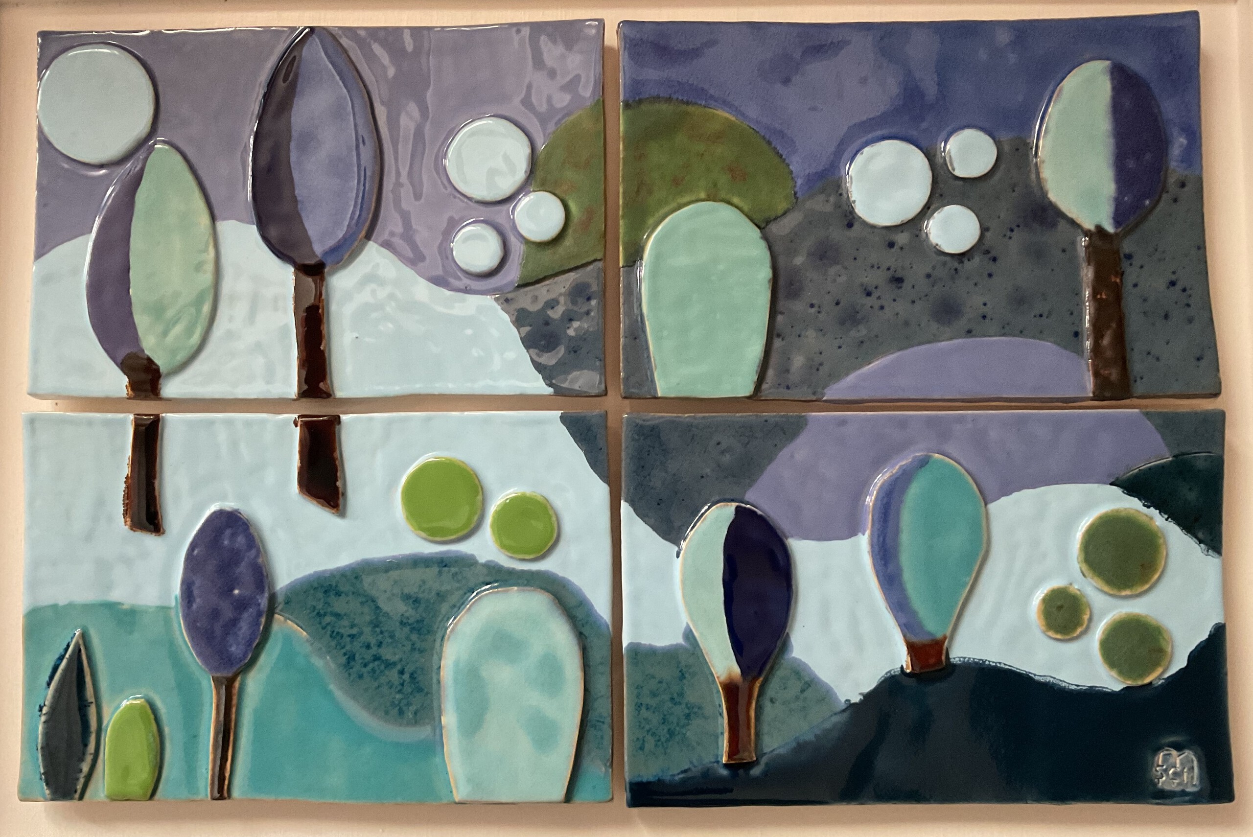 Dit is het tweede schilderij, van drie, die ik in februari heb afgerond. De andere zijn: Vissen en Boom, ook te zien op Exto. Ook dit schilderij is ingelijst met een houten, witgeschilderd frame.