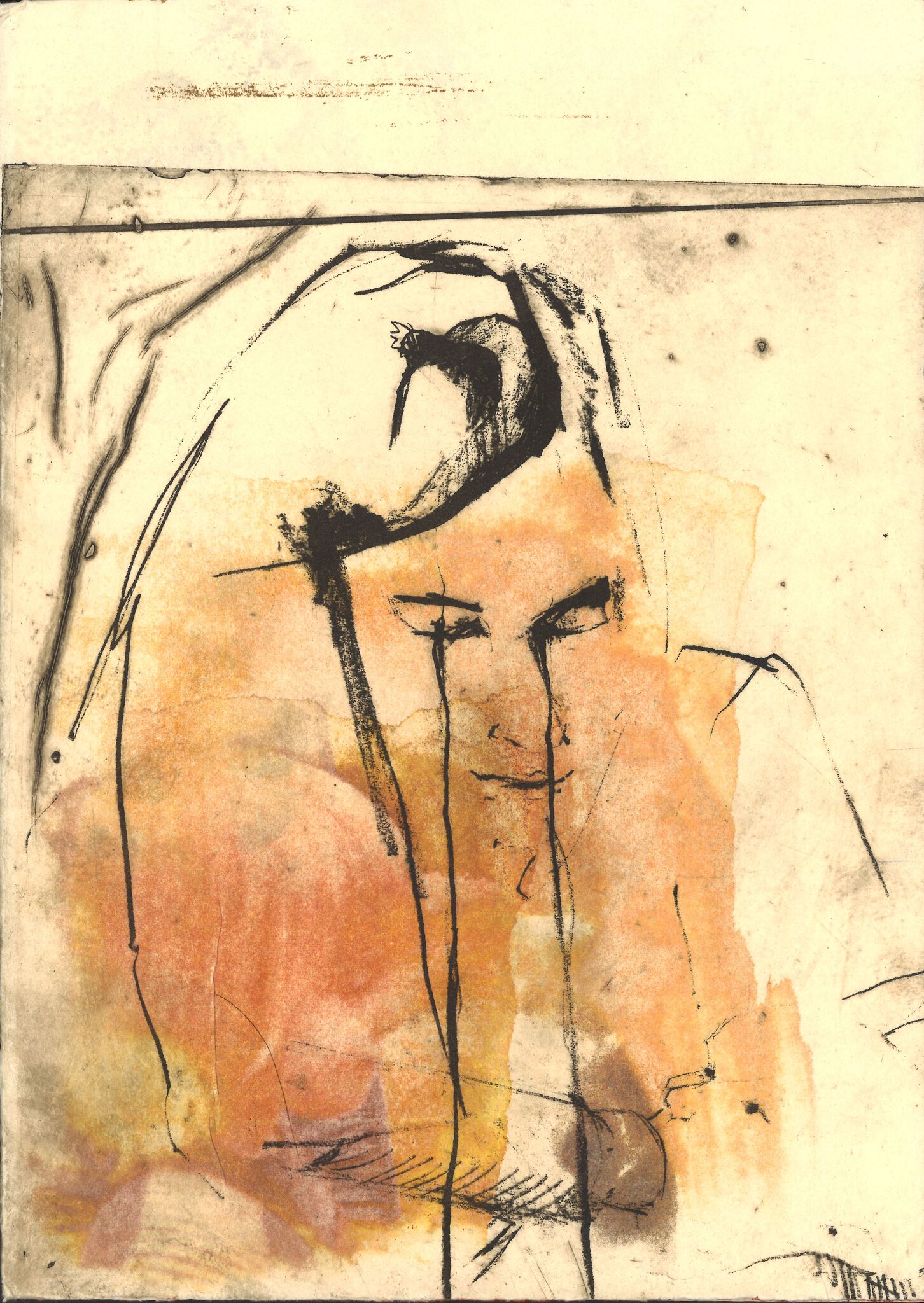 Dit werkje gaat over de problematiek van KOPP kinderen, kinderen van ouders met psychische problemen. Eerst tekende ik en werd er een afdruk gemaakt met de techniek fotopolymeer. Bij het afdrukken werken verschillende technieken gebruikt. Het werkje wordt gepresenteerd op berkenhout van 2cm dik waarbij de randen mooi zijn afgewerkt met een patine.
