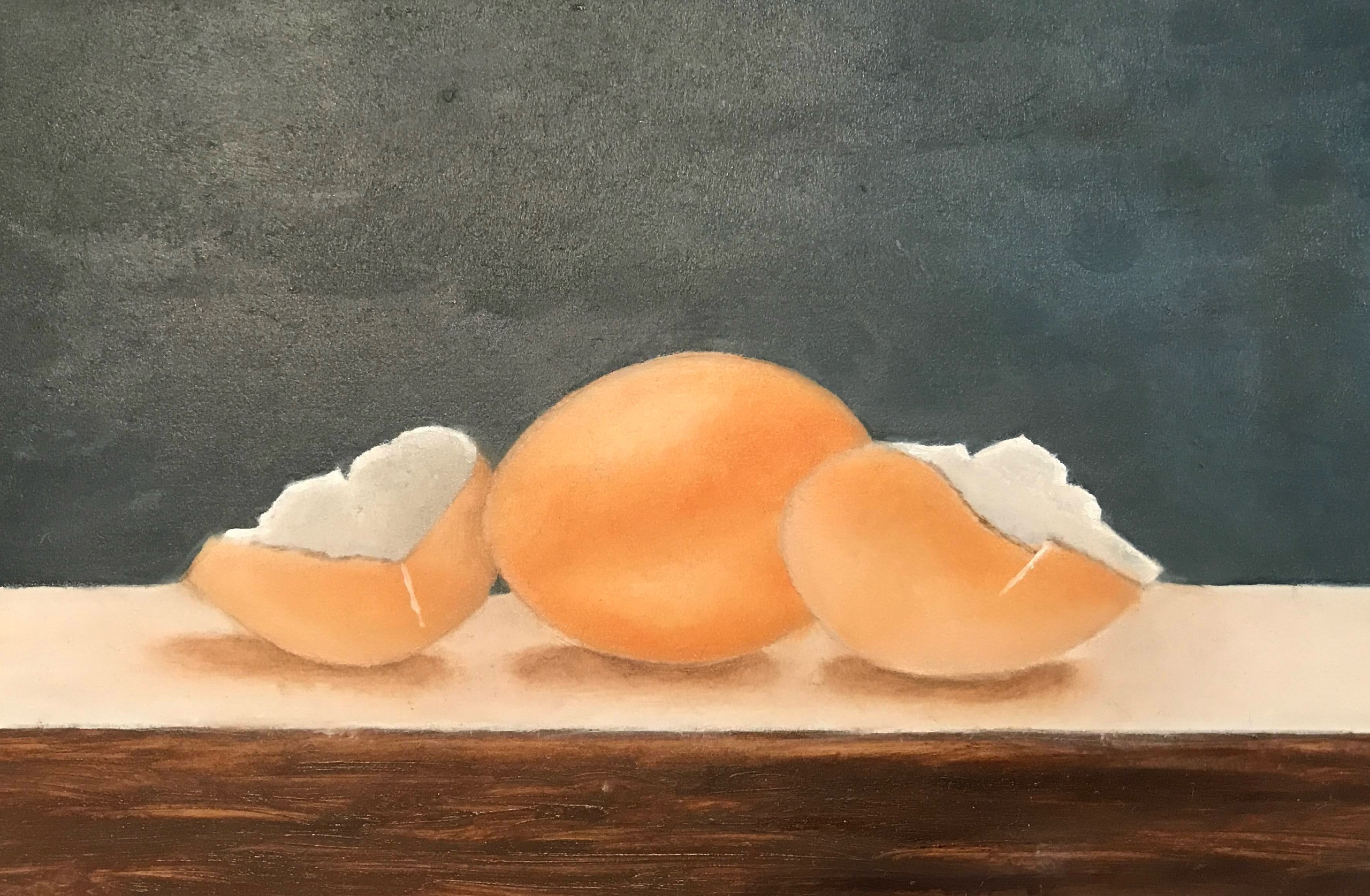 Bruin Realistisch Olieverf Stilleven Ei Eitjes Fijnschilderen Lege Eieren Eierdoppen Eierschalen