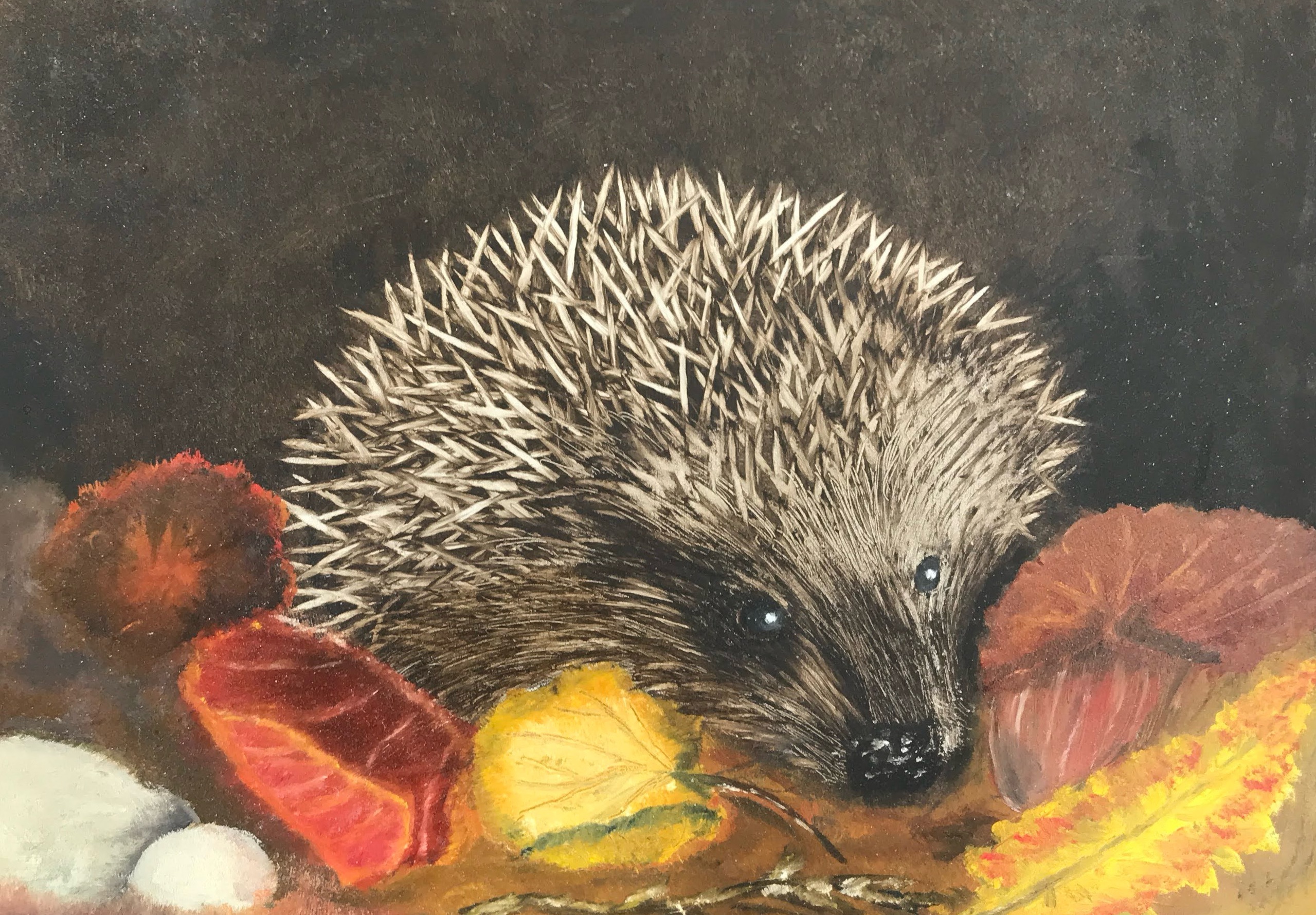 Egel Realistisch Olieverf Paneel Bladeren Stilleven Bos Fijnschilderen Miniatuur
