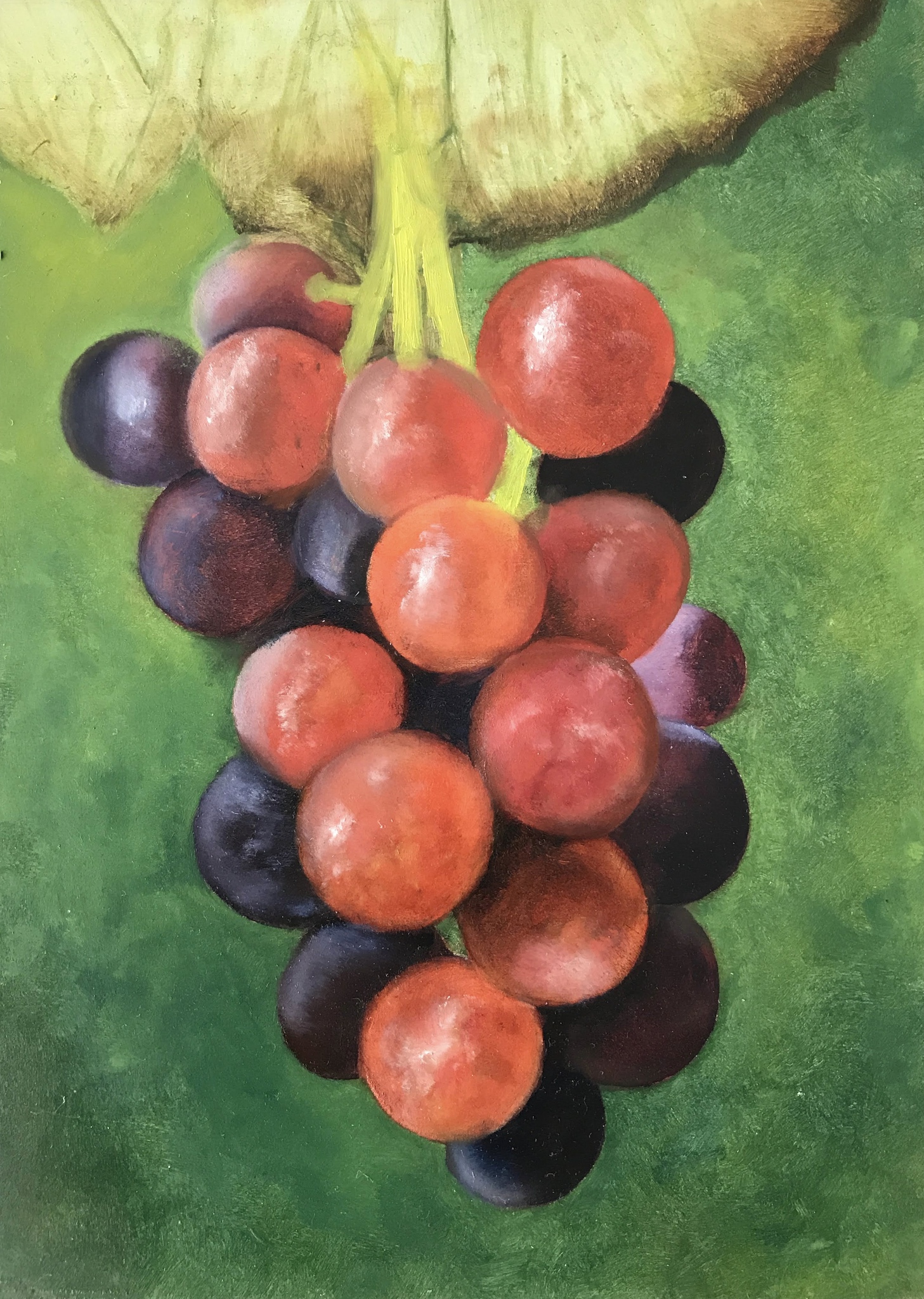 Rood Paars Groen Fruit Realistisch Olieverf Paneel Stilleven Druiven Fijnschilderen Miniatuur Vrucht Druiventros Tros Trosje