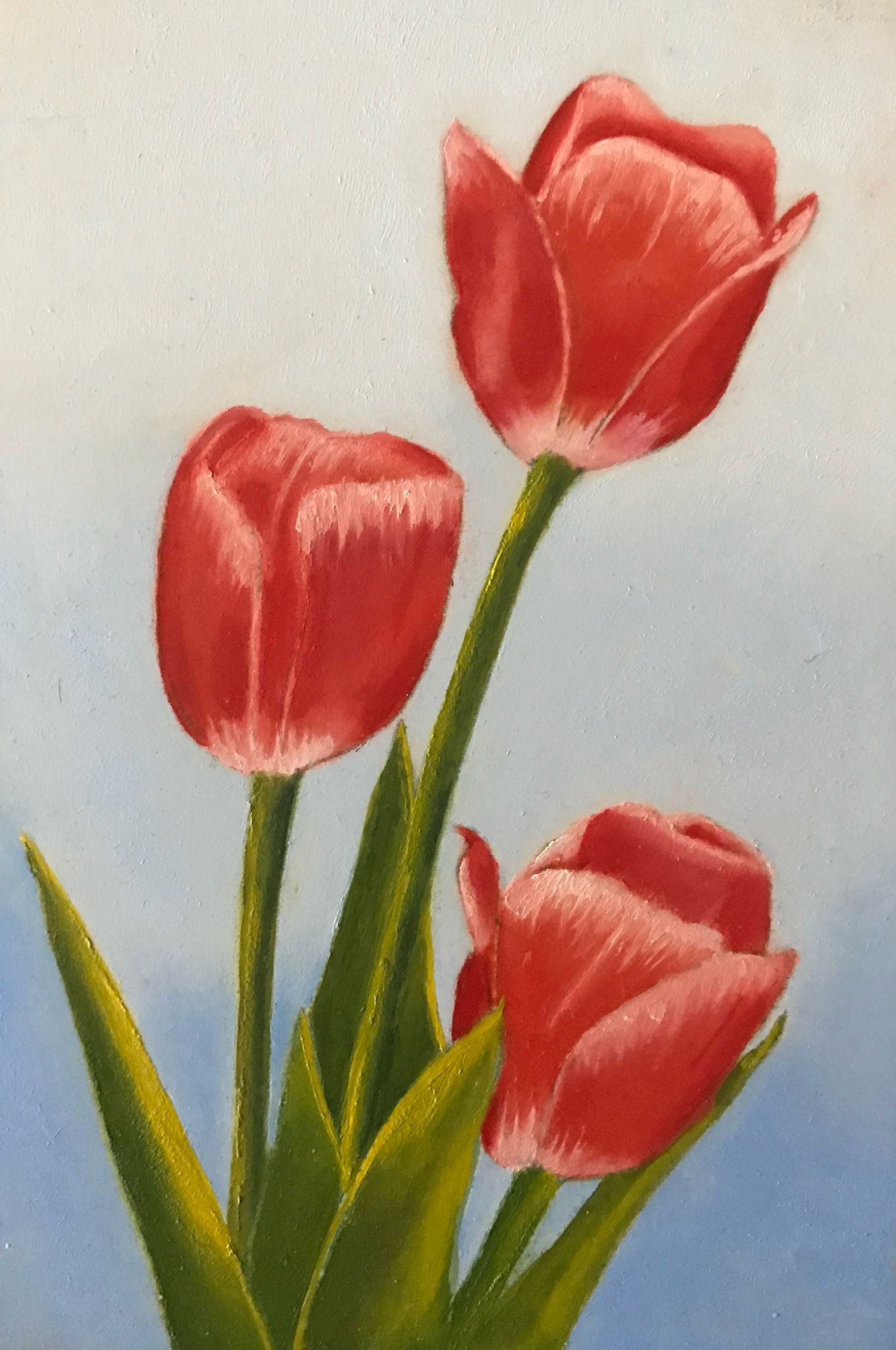 Rood Tulp Tulpen Realistisch Olieverf Paneel Stilleven Fijnschilderen Miniatuur