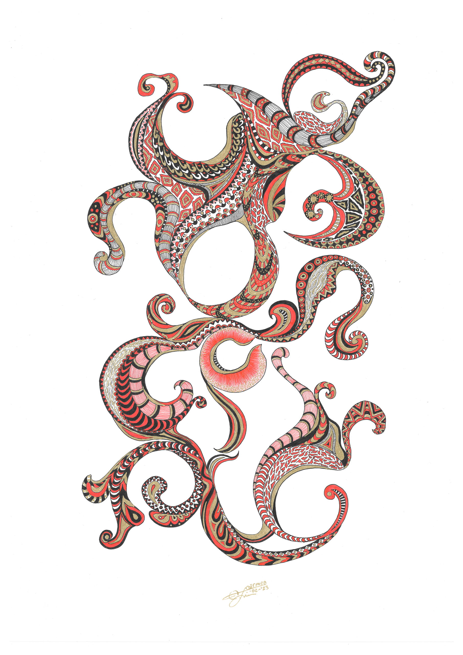 Abstract Rood Zwart Goud Sierlijk Pentekening