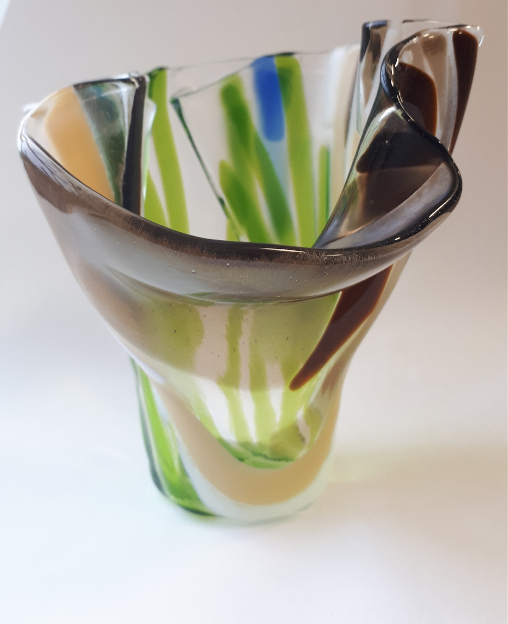 Glas Glasfusie Glaskunst Bullseyeglass Bruin Blauw Groen Vaas Louky Scheltema Loukyscheltemacom Glass Glassfusion Glassart Brown Blue Green Vase