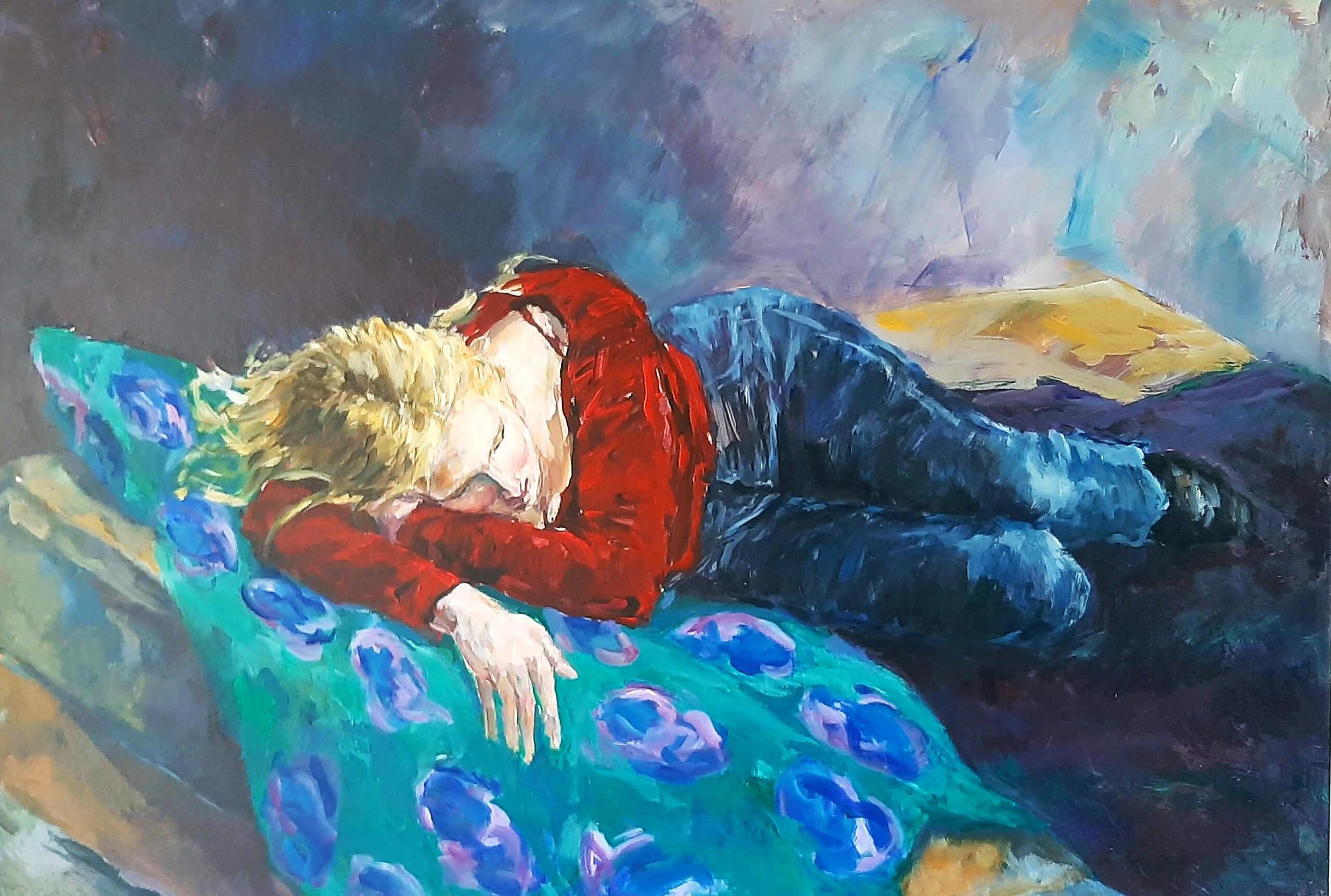 Liggend model in vrije stijl geschilderd