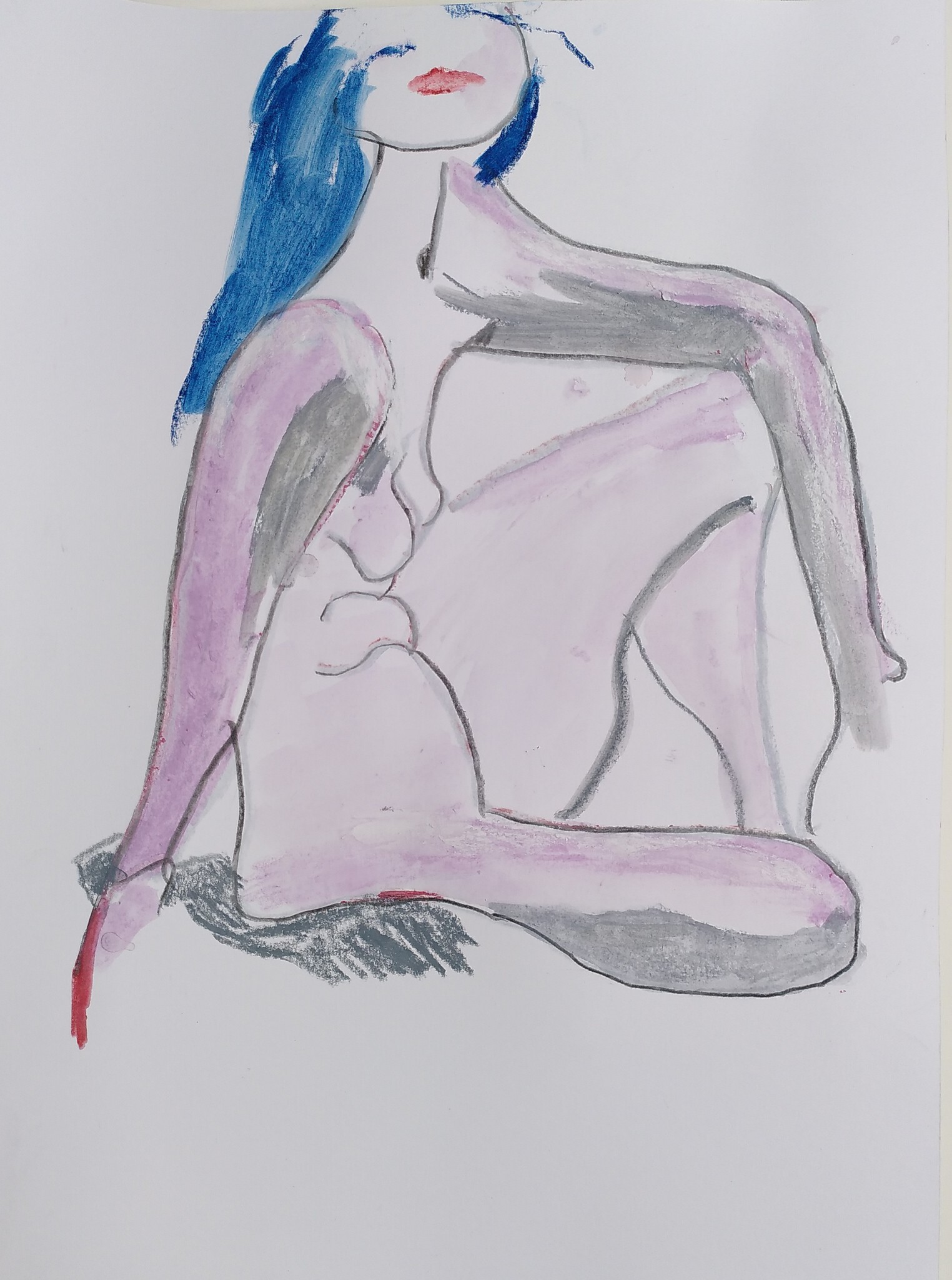 Modeltekening met viltstift, softpaste, potloodl en veel water