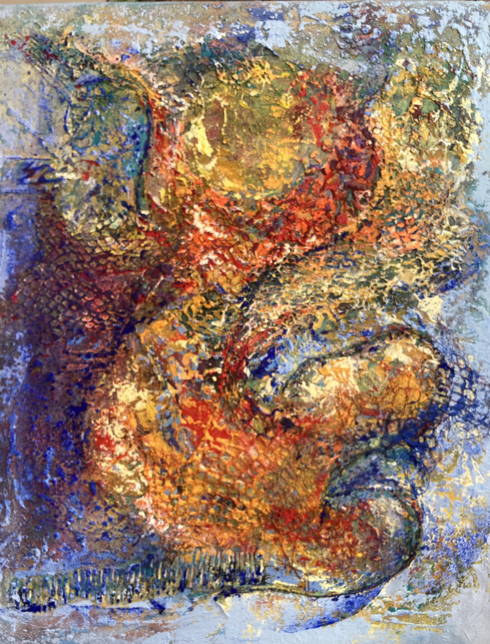 Schilderen met acryl en paletmes. Meeste schilderijen ontstaan vanuit innerlijk beeld, indruk of tekst.
