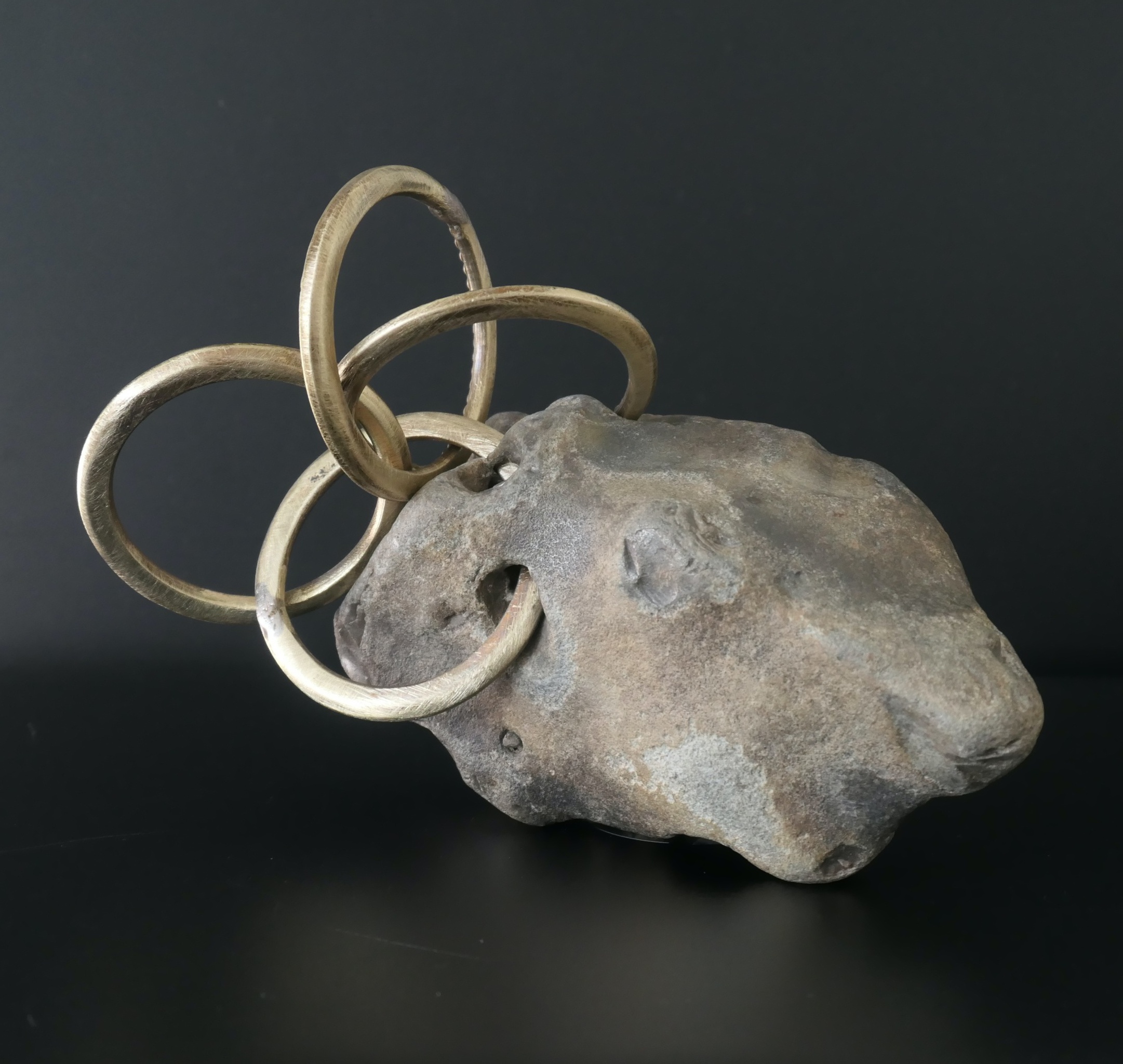 Eeuwenoude steen voorzien van metalen abstractie ...