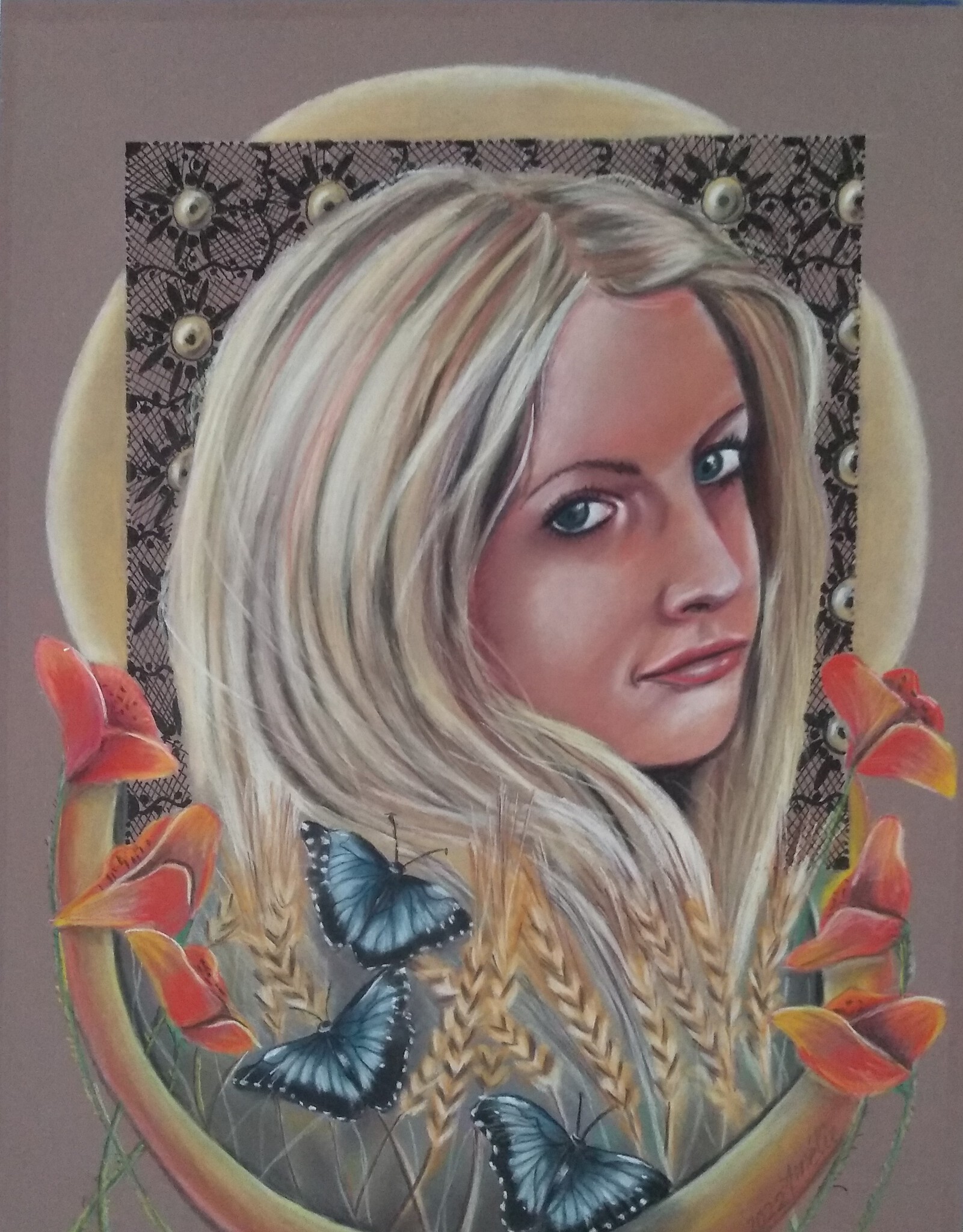 Bloemen Vrouw Inkt Kant