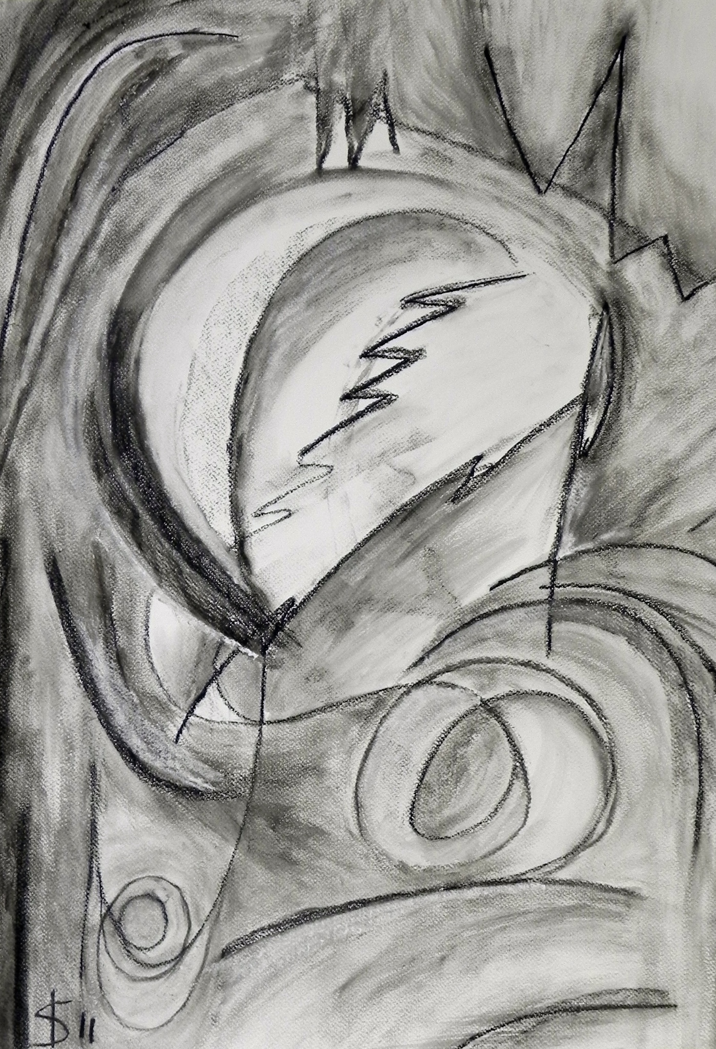 Abstract Zwart Krijt Figuur Houtskool Symbolisch Expressionisme Mythisch Zwart-wit