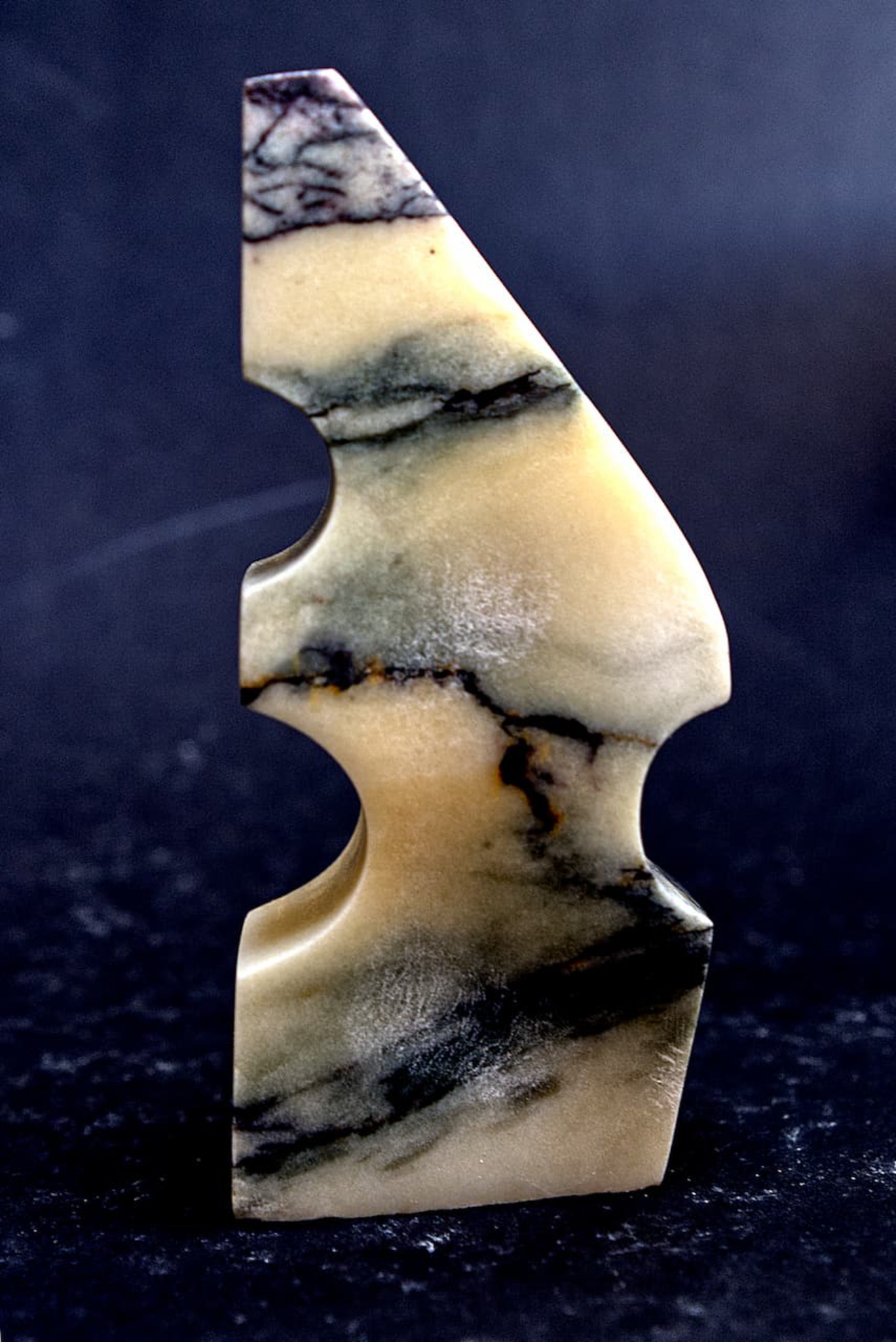 Een klein beeldje, gemaakt uit een reststukje marmer, met een sprekend verloop van aders en kleuren.