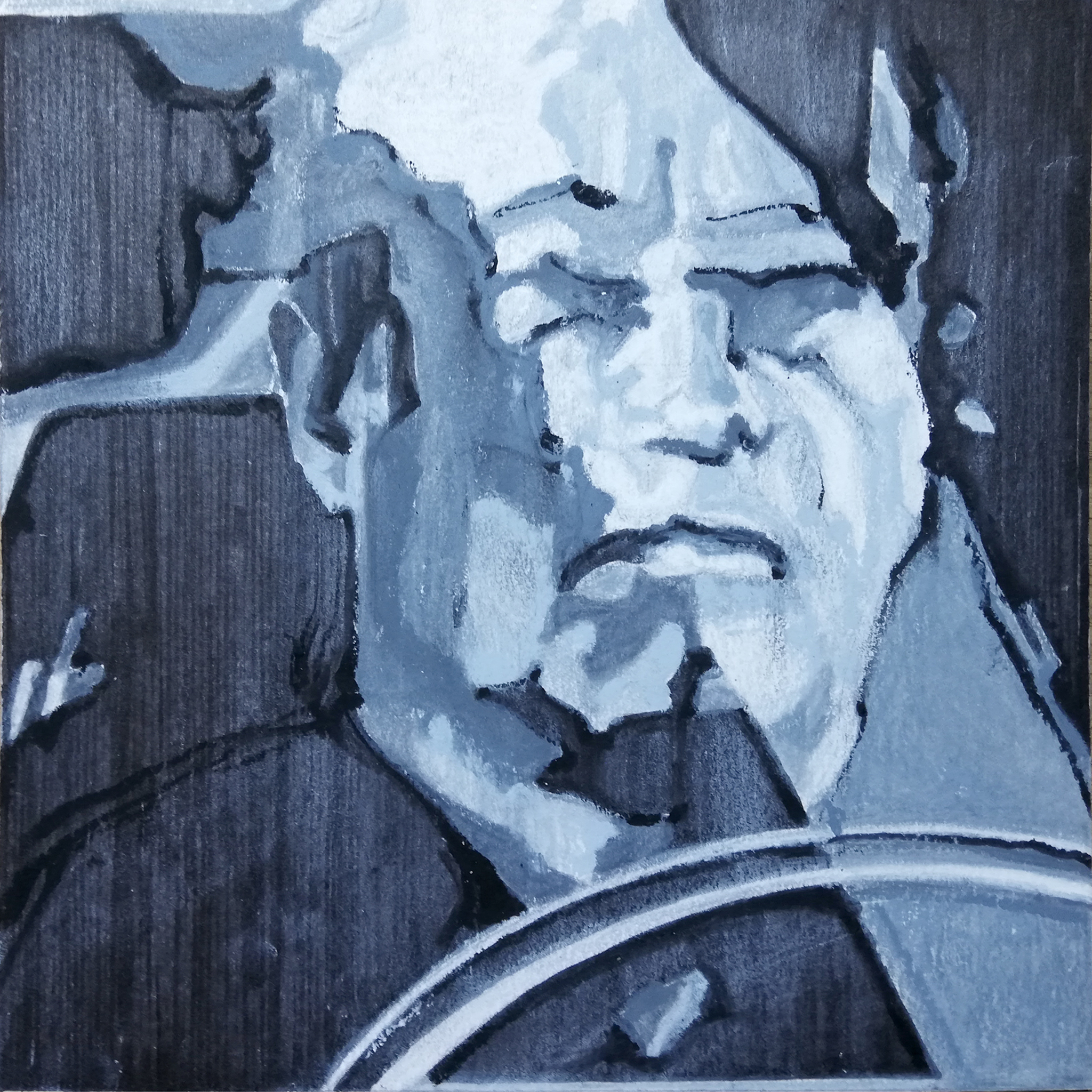 Een chauffeur in een auto, een machine als verlengstuk van het lichaam, gefotografeerd door een flitscamera, volledig zichzelf in zijn gedachten en daarmee de meest persoonlijke portretfoto, automatisch gemaakt door een machine. Gebaseerd op flitsfoto's verzameld door de beeldend kunstenaar en documentairemaker Pascal Aimar uit de serie "Car en Sac."