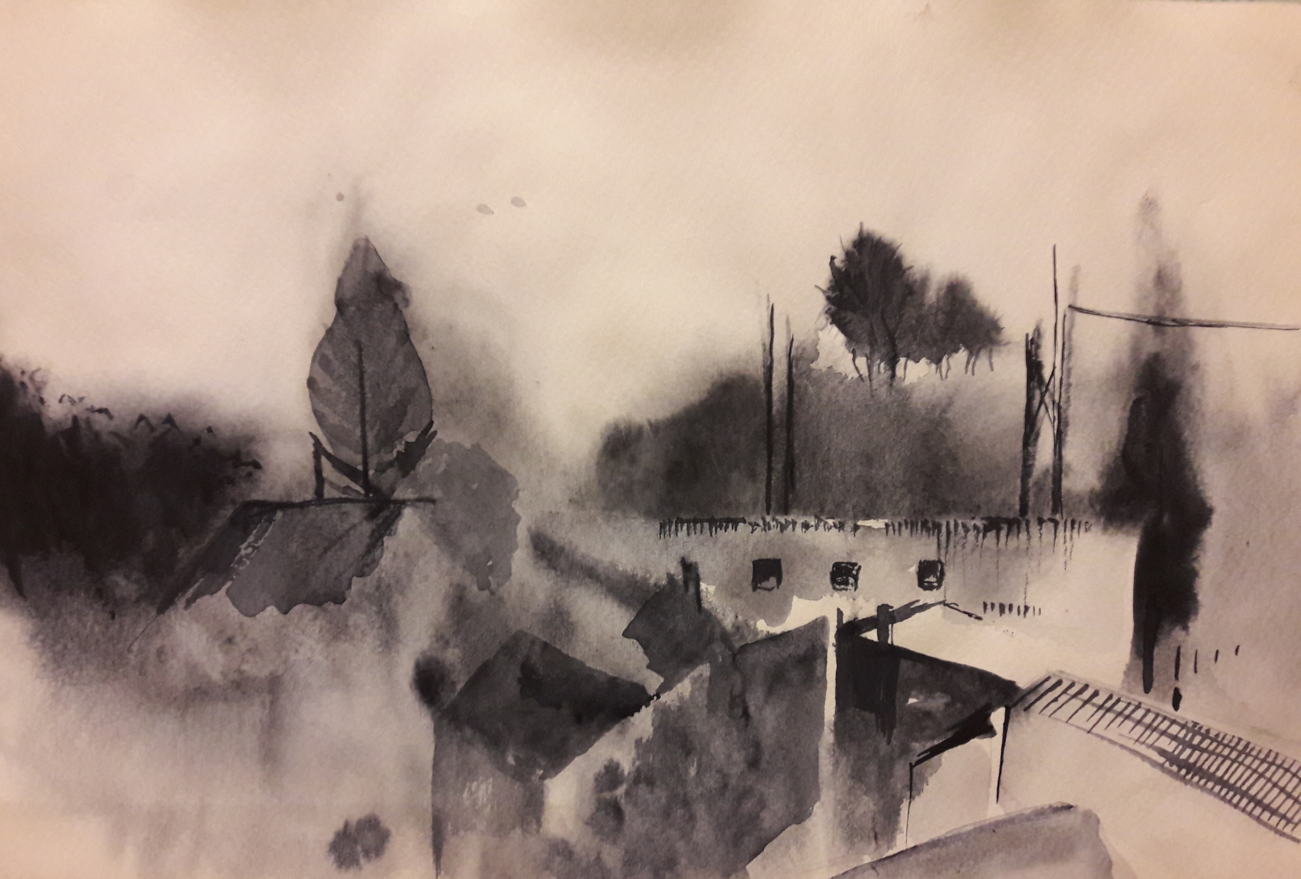 Landschap Aquarel Dorpsgezicht
