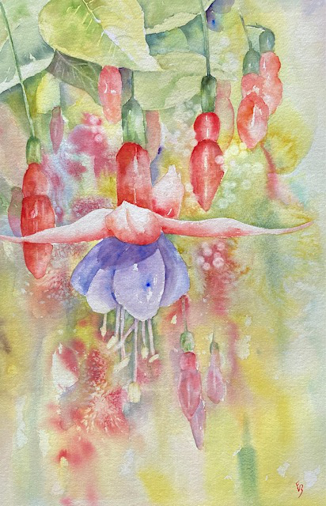 Fuchsia overgoten met zonlicht. Deelname aan de expositie D'Aquarelles Albi, Frankrijk 2023 VERKOCHT