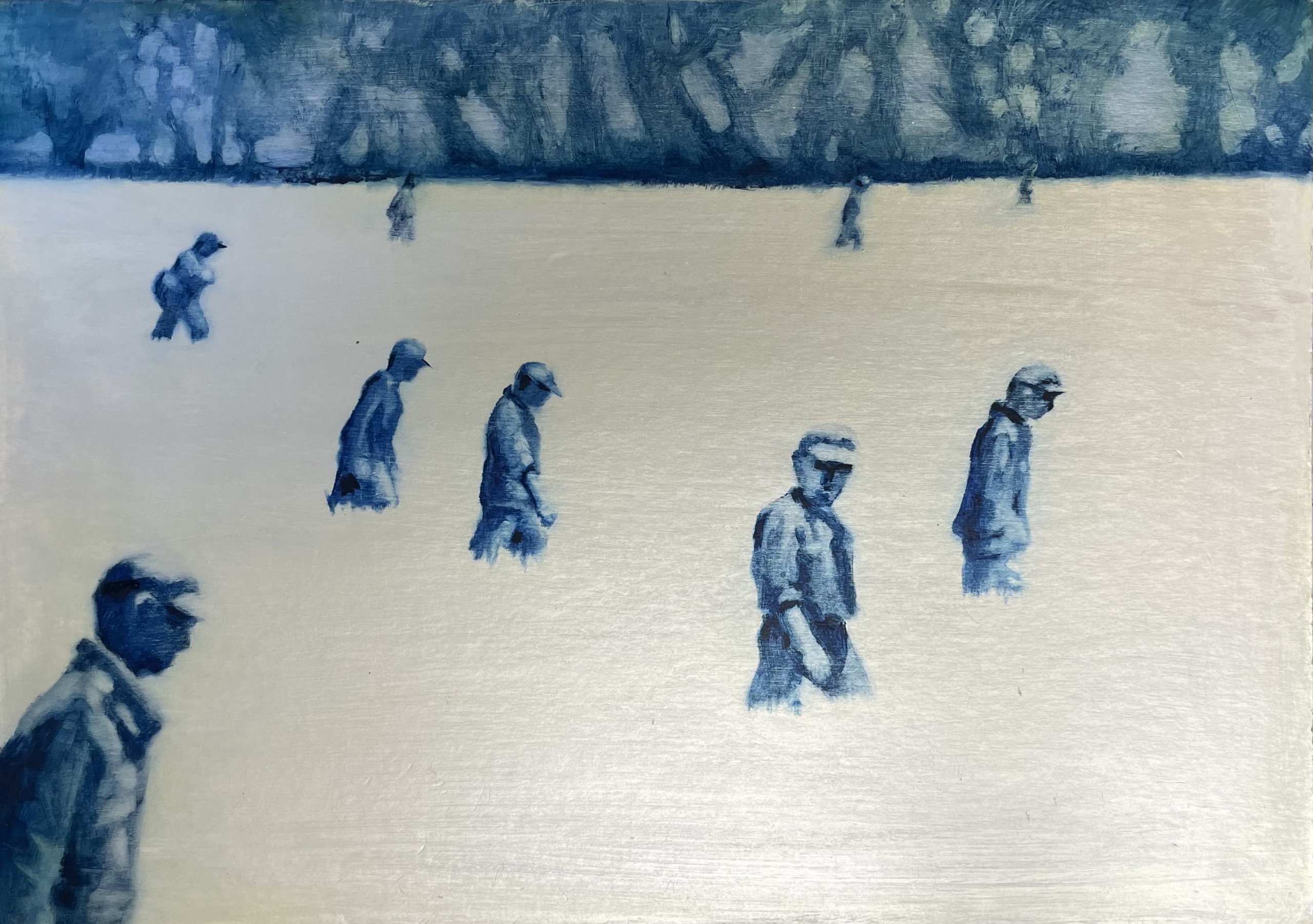 olieverf op zilver geschilderd eskaprint. Oekrainers zoeken naar restanten van de MH17 in het graanveld