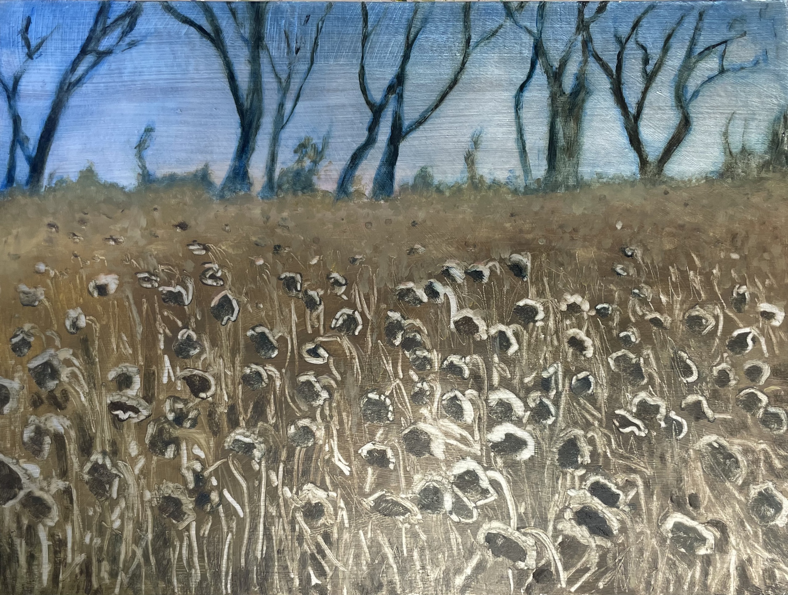 Olieverf op zilvergeschilderd eskaprint. Herfst in Hrabove.