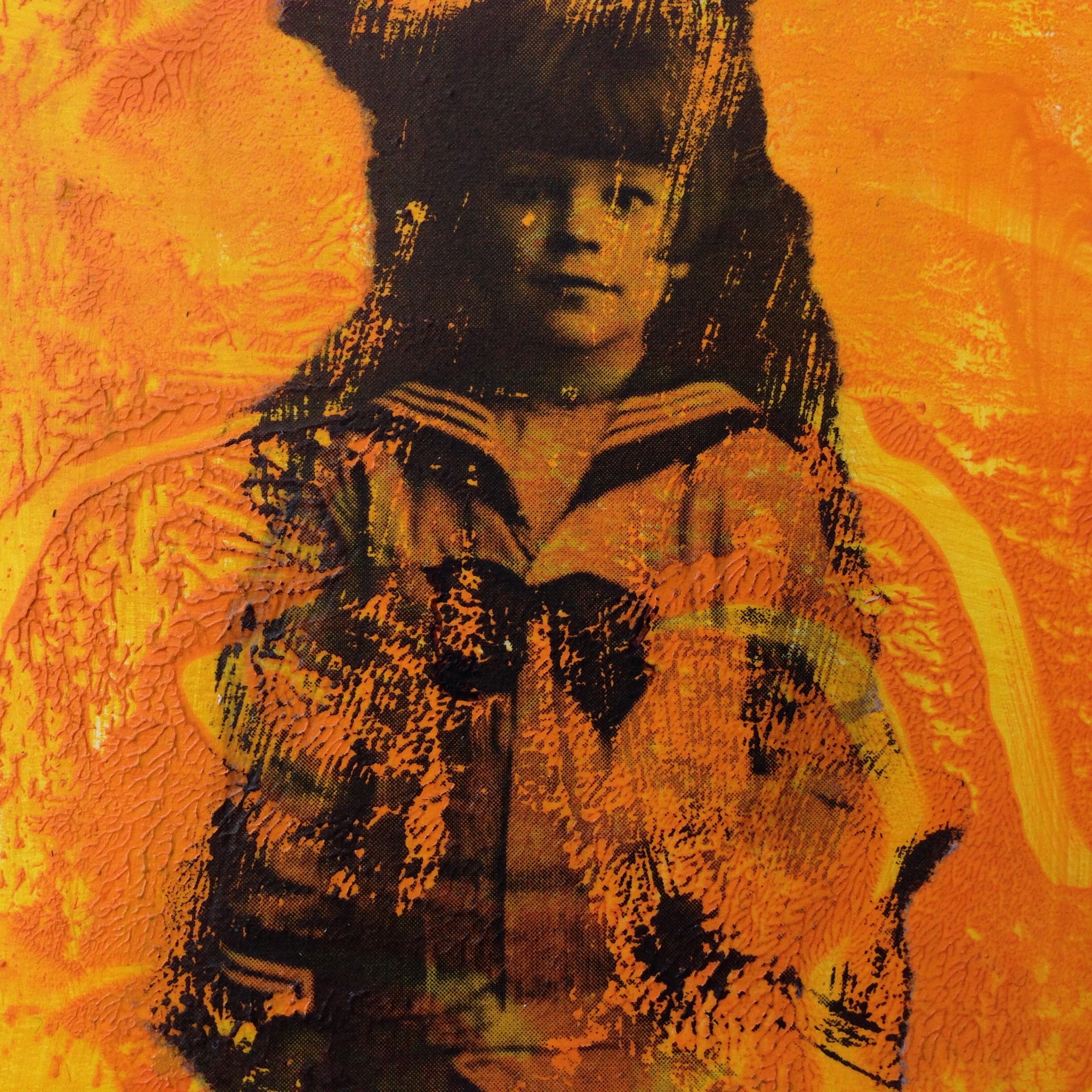 Er zijn maar weinig foto's gemaakt in de tijd dat mijn moeder jong was. Dit is er een van. Poserend in een mooi matrozenpakje voor de fotograaf. Tansfer techniek op een gelprint.
