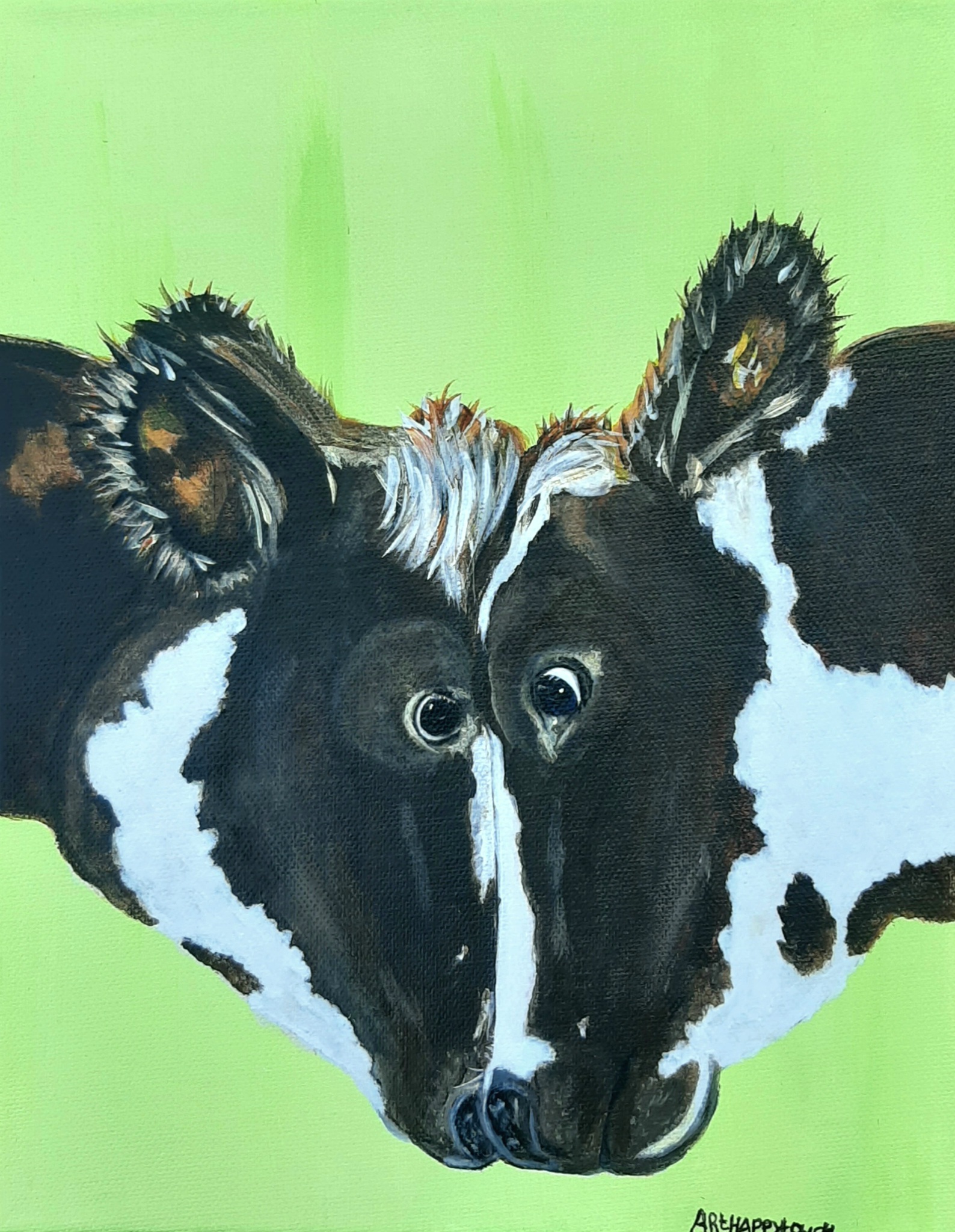 Lief schilderij Koeien Knuffel in vrolijk acryl op canvas