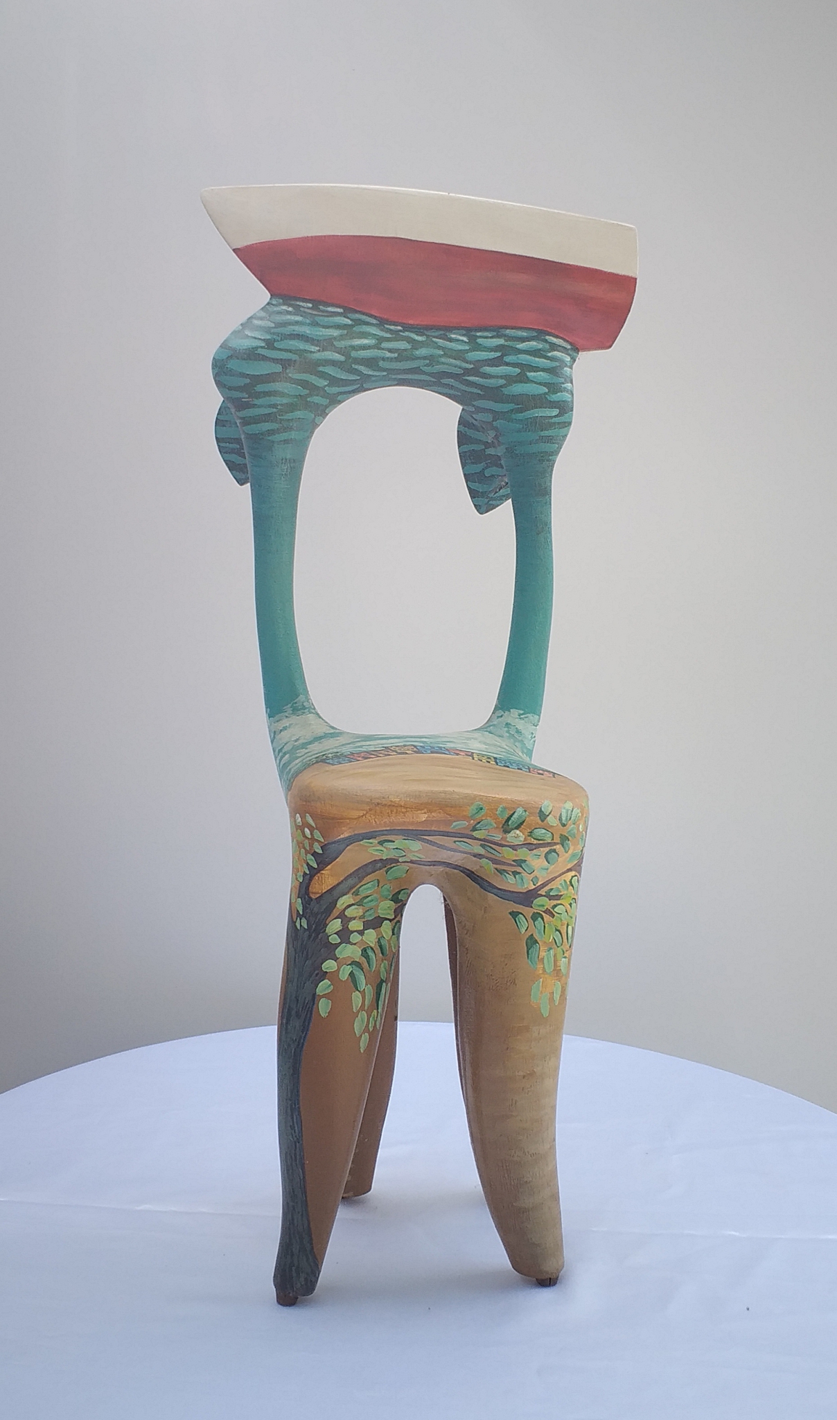 Gemaakt van mahonie. Beschilderd.