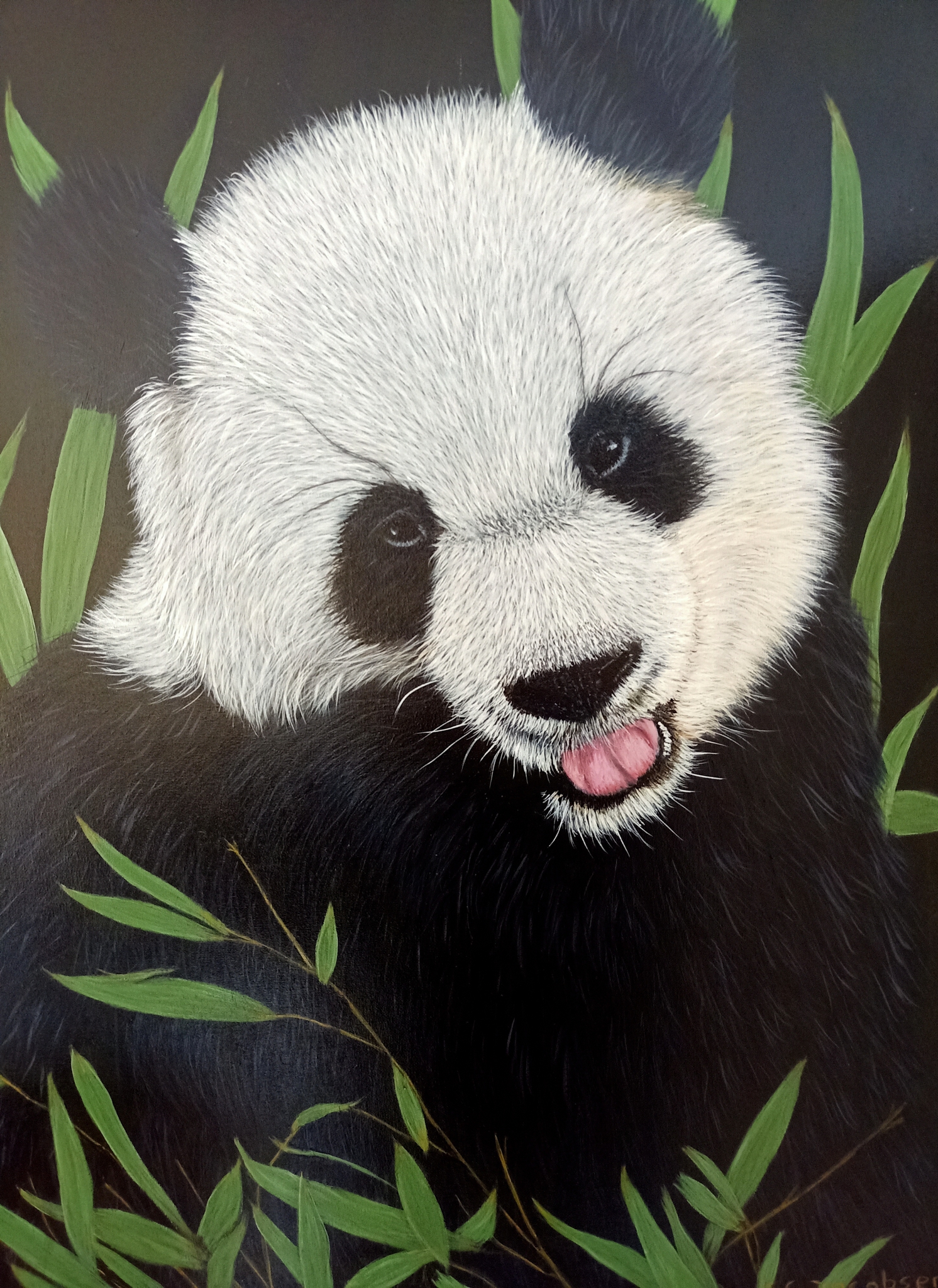 Panda beer acrylverf op canvas 60 X 80 cm Gloss vernis In bijna zwarte baklijst