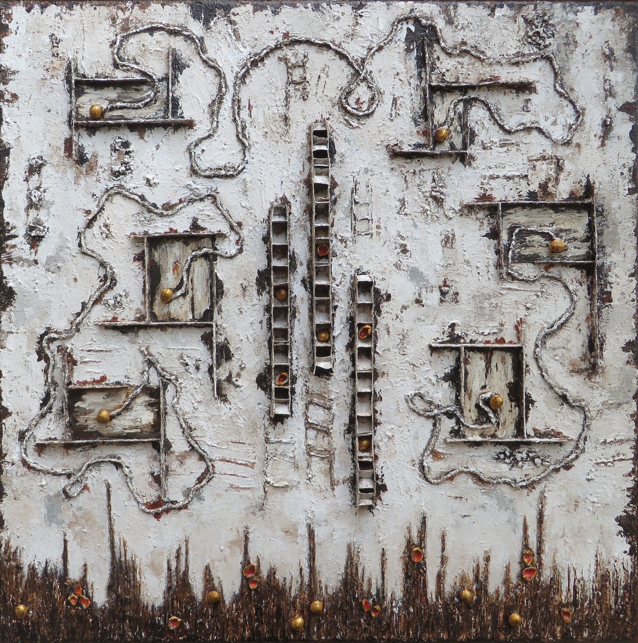 Wit Abstract Grijs Bruin Mixed Media Structuur Vervallen Verweerd Materiekunst
