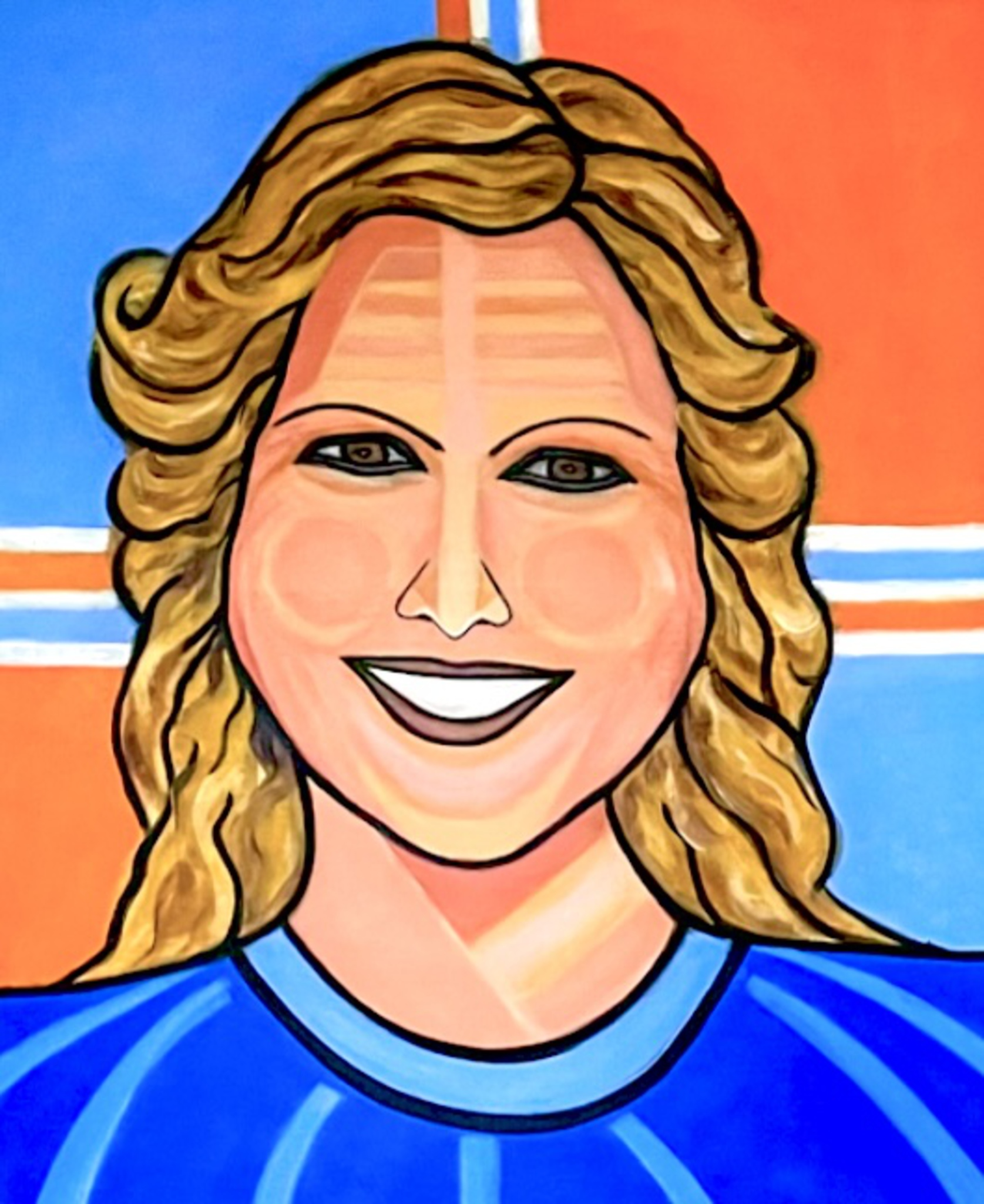 Vrolijk portret van onze altijd charmante koningin Máxima, in koninklijke kleuren.