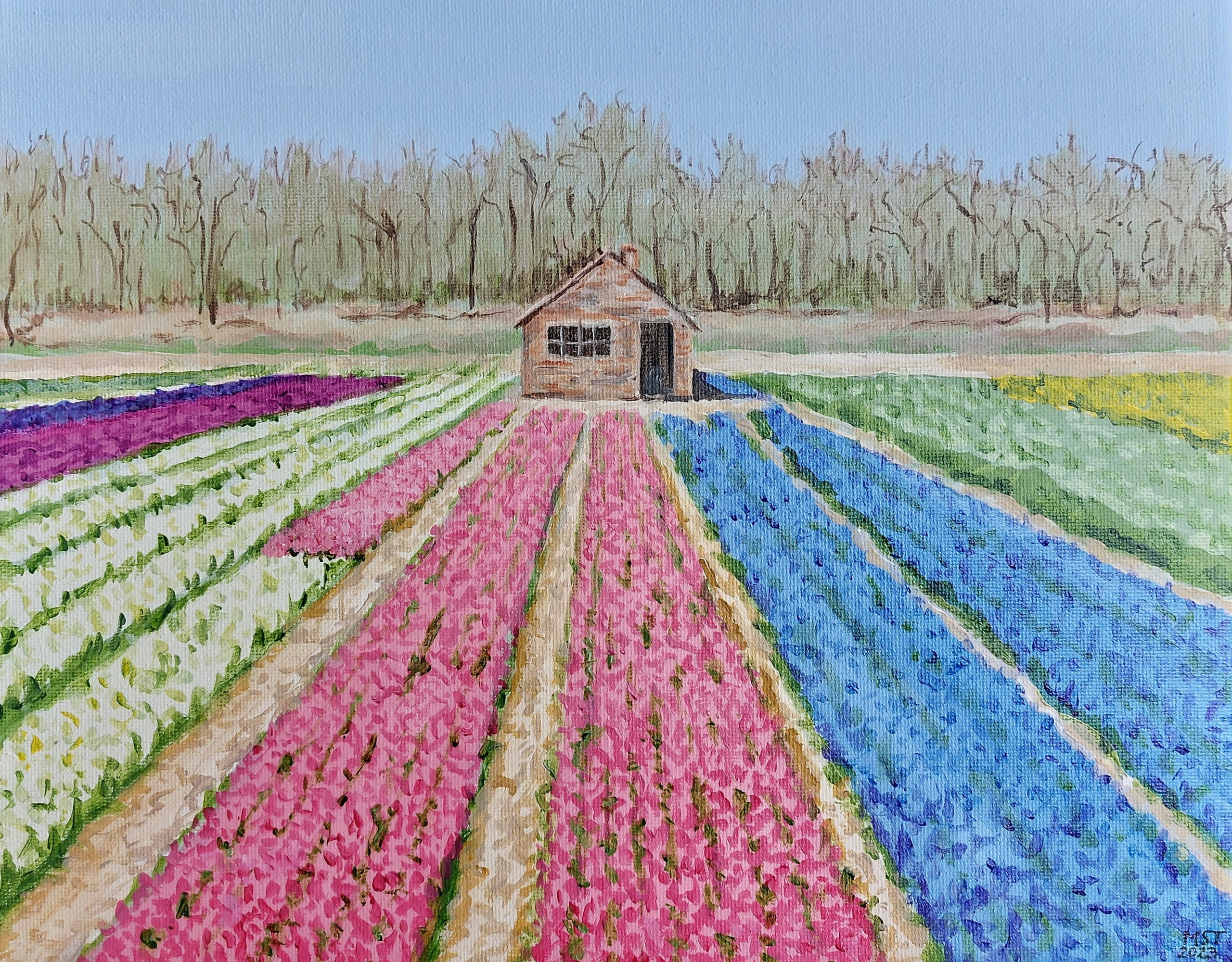 Zicht op het landschuurtje in de bollenvelden bij Vogelenzang Nr 2