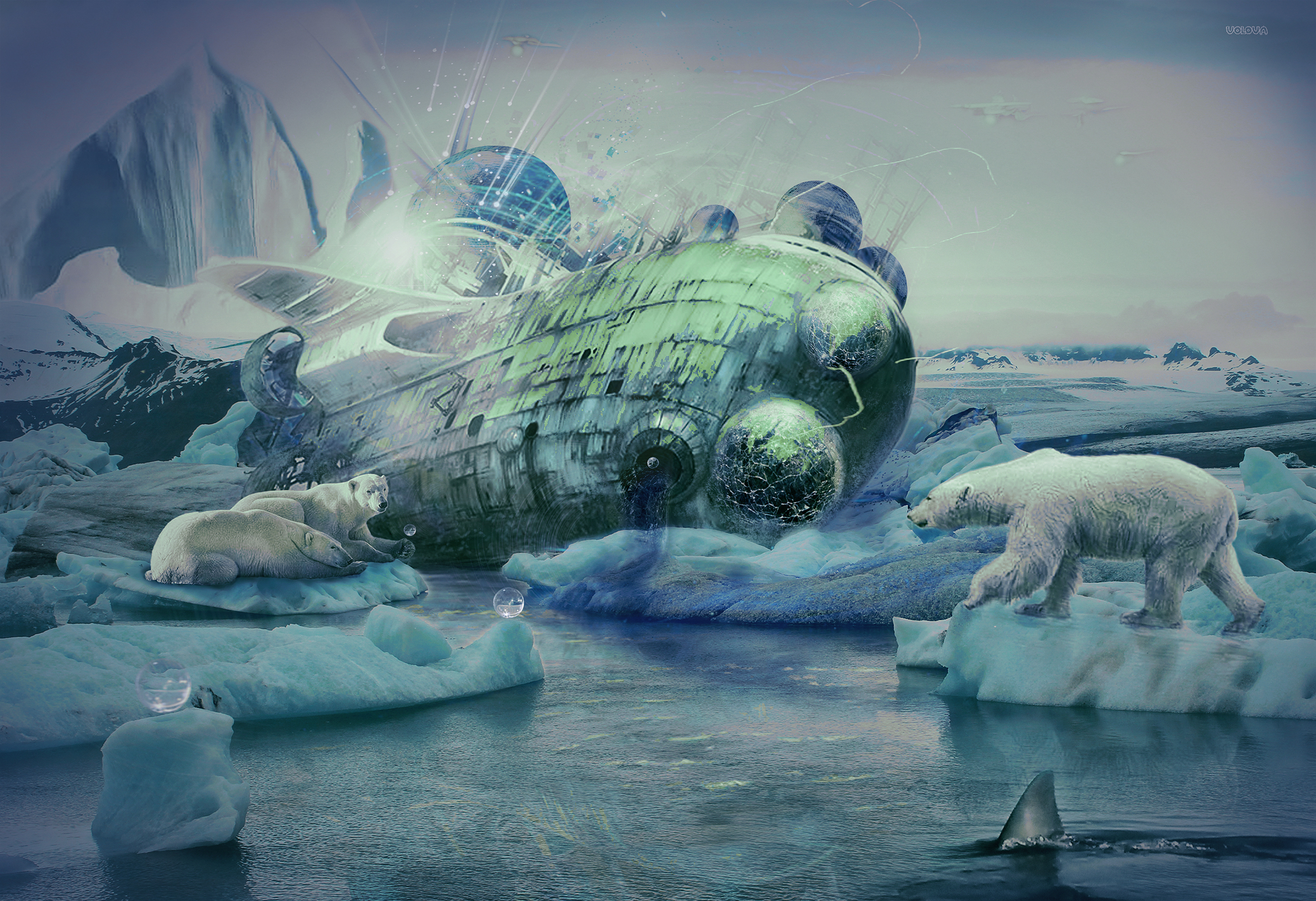 Ijs Ijsbeer Schip Blauw Surreëel Digitaal
