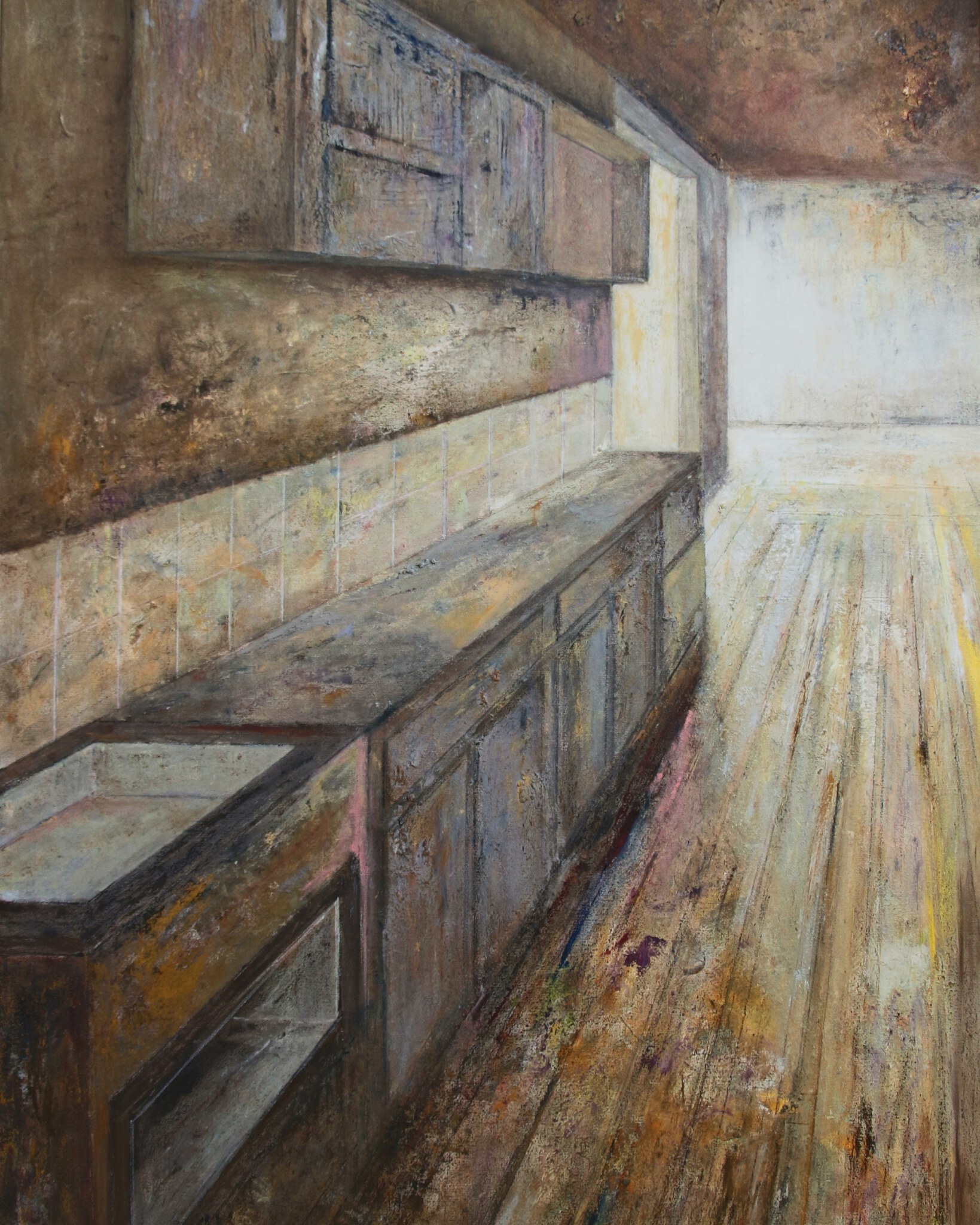 Ik kreeg mijn schildersopleiding aan de Academie te Brugge. Met mengtinten van grijs, blauw en oker roepen mijn schilderijen een beeld van vergankelijkheid op.