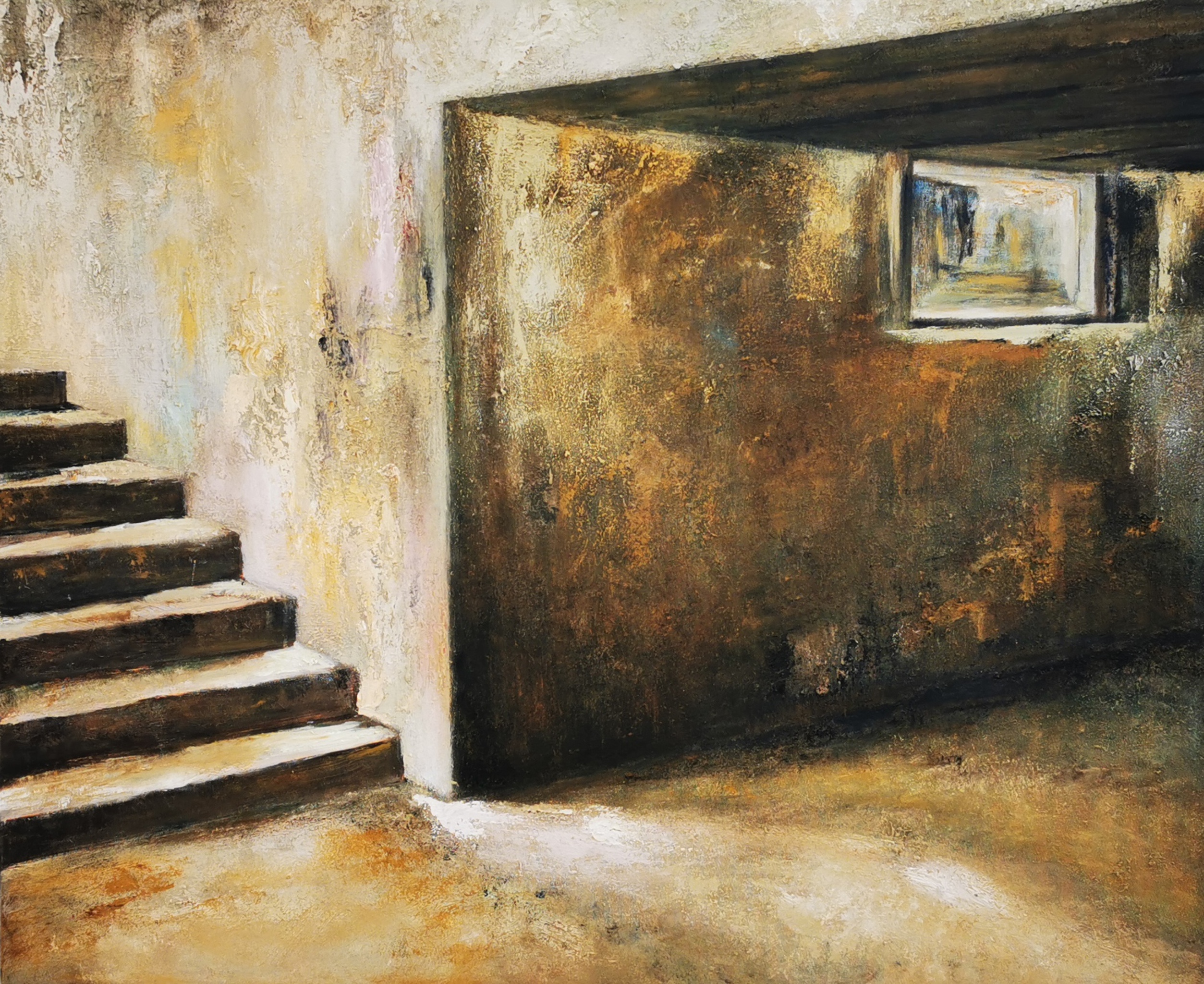 Ik kreeg mijn schildersopleiding aan de Academie te Brugge. Met mengtinten van grijs, blauw en oker roepen mijn schilderijen een beeld van vergankelijkheid op.