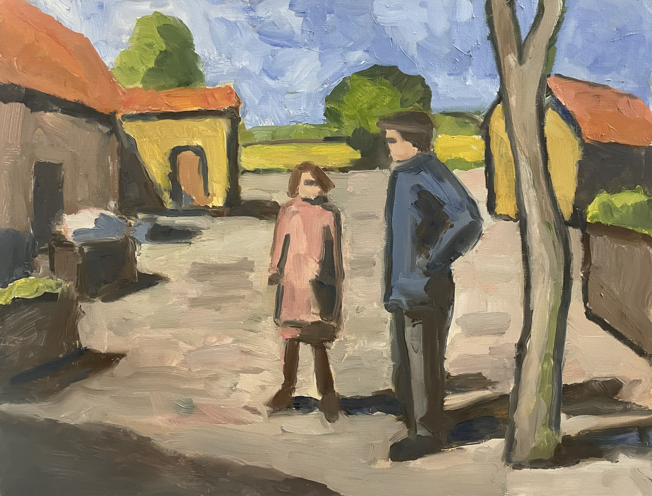 Ik schilder graag mensen in allerlei situaties, binnen of buiten. Een landschap of interieur zonder mensen kan mij ook inspireren.