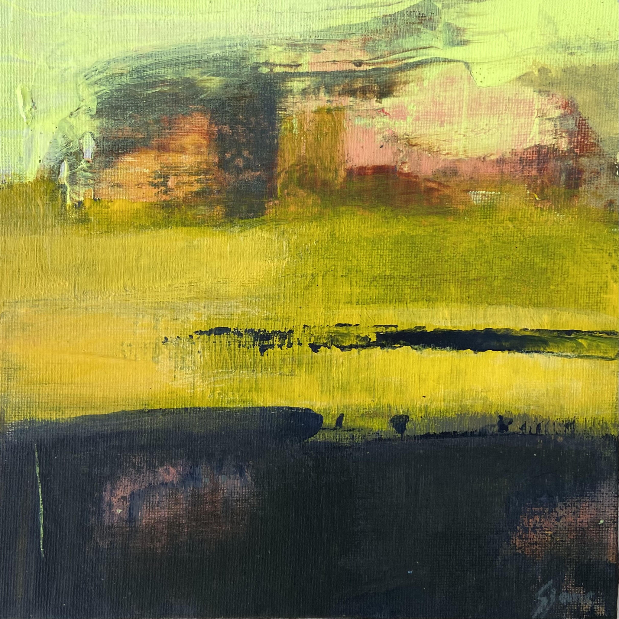 Het landschap is mijn grootste inspiratiebron. In de zomer heb ik veel buiten geschilderd. Mijn landschappen zijn kleurrijk en sterk geabstraheerd. Op het moment zijn mijn landschappen abstract.