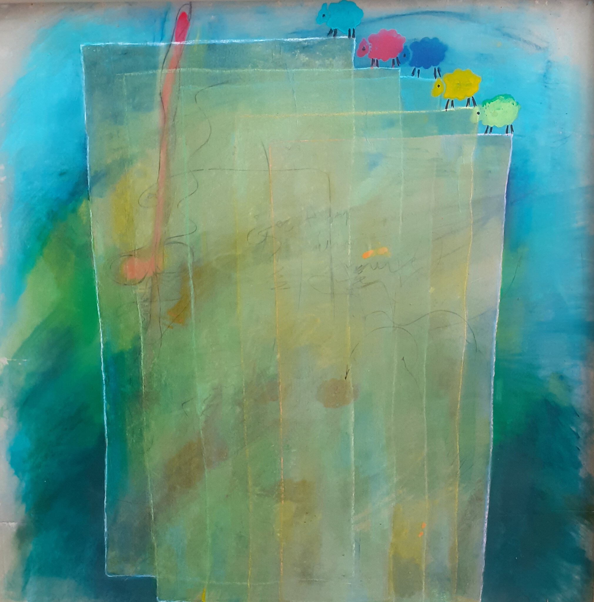 Dit kunstwerk toont schapen die door middel van hun vastberadenheid en intelligentie het onmogelijke hebben bereikt. Ze hebben het water overwonnen en bewijzen dat geen enkel obstakel te groot is voor hen.