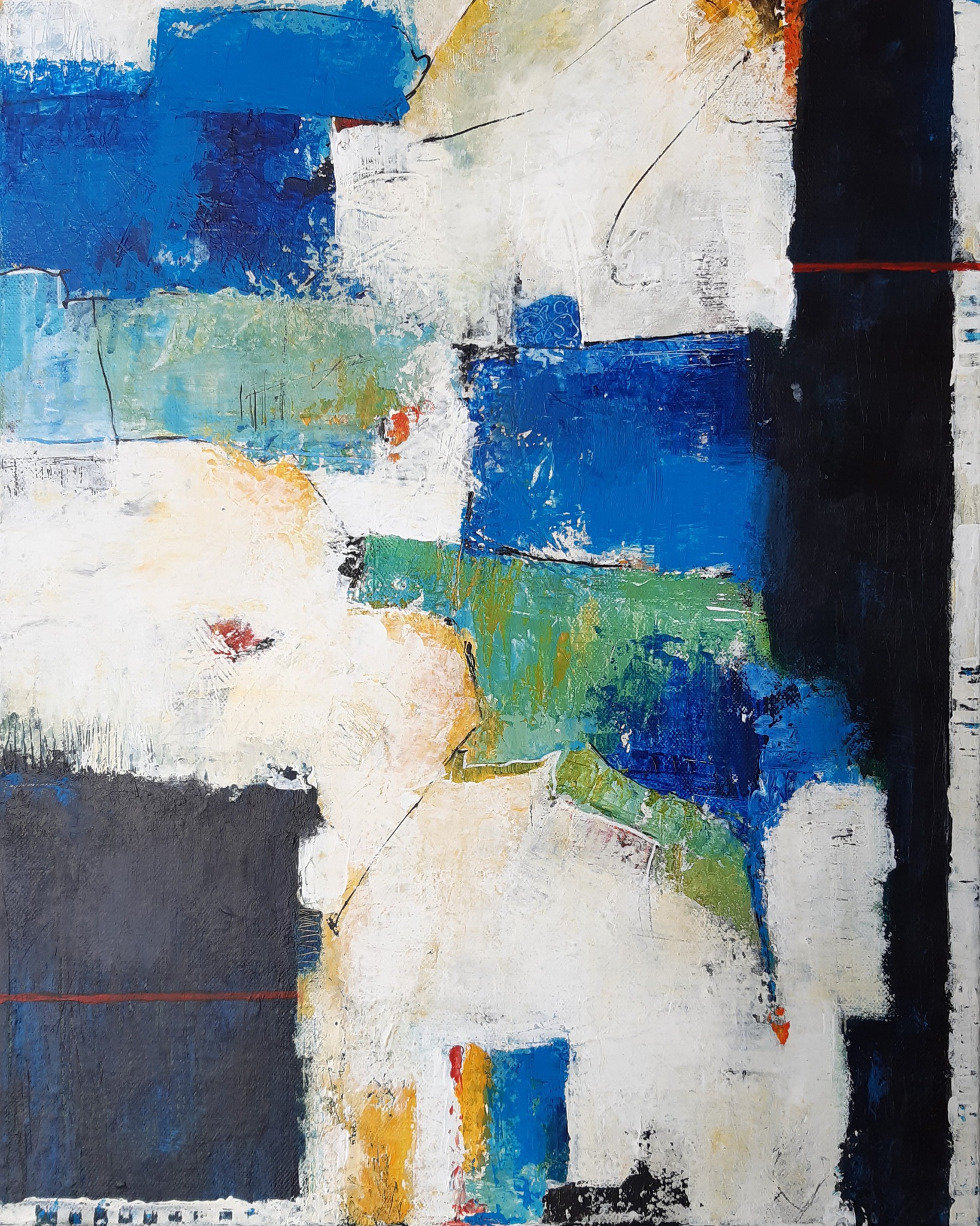 Na een lange periode van schilderen van realistisch werk, meander ik momenteel tussen abstractie, realisme en surrealisme, daarnaast ook op zoek naar eenvoud