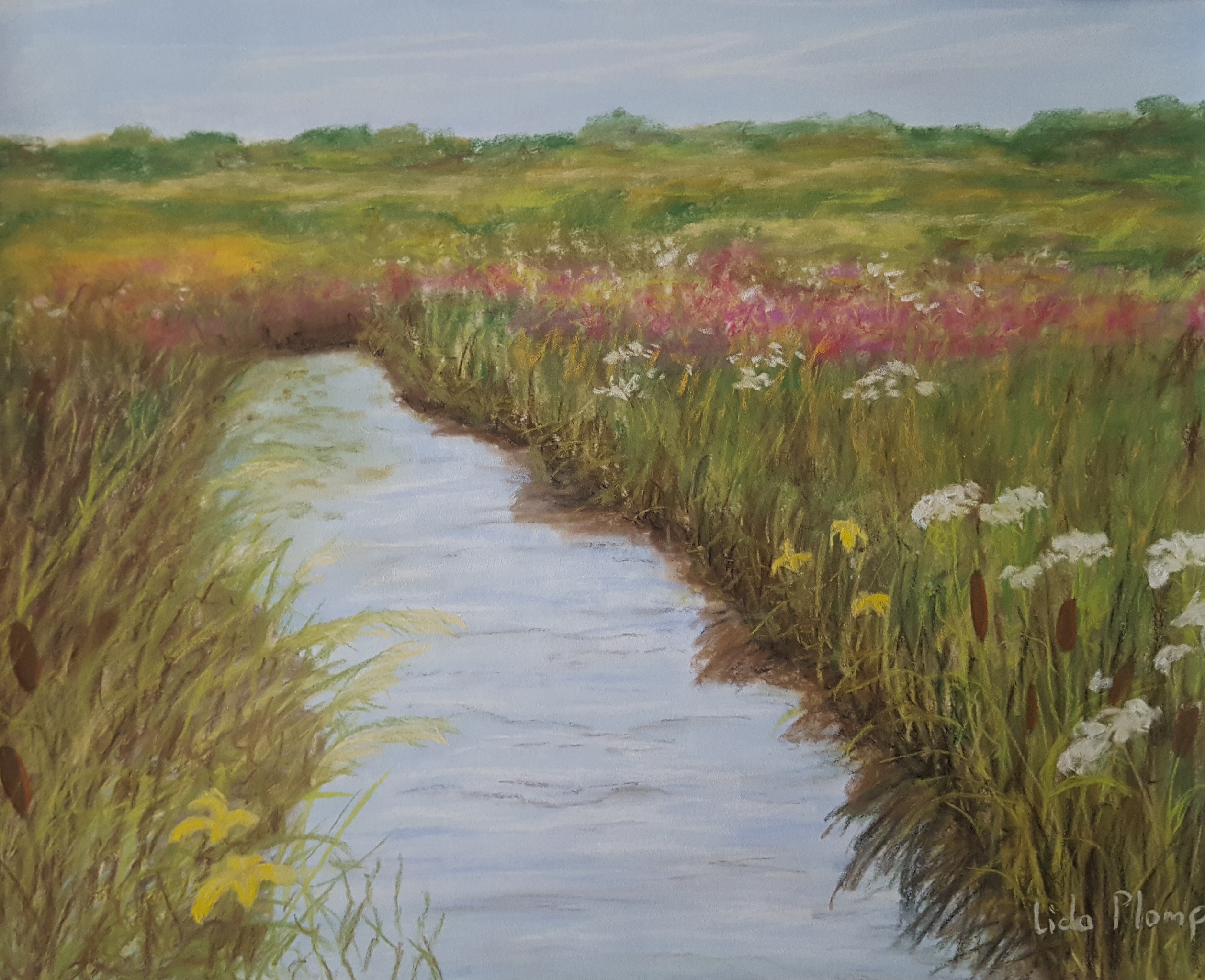 In de polder: Pasteltekening in whtiwash lijst met passepartout. Lijst: 40x50 cm.
