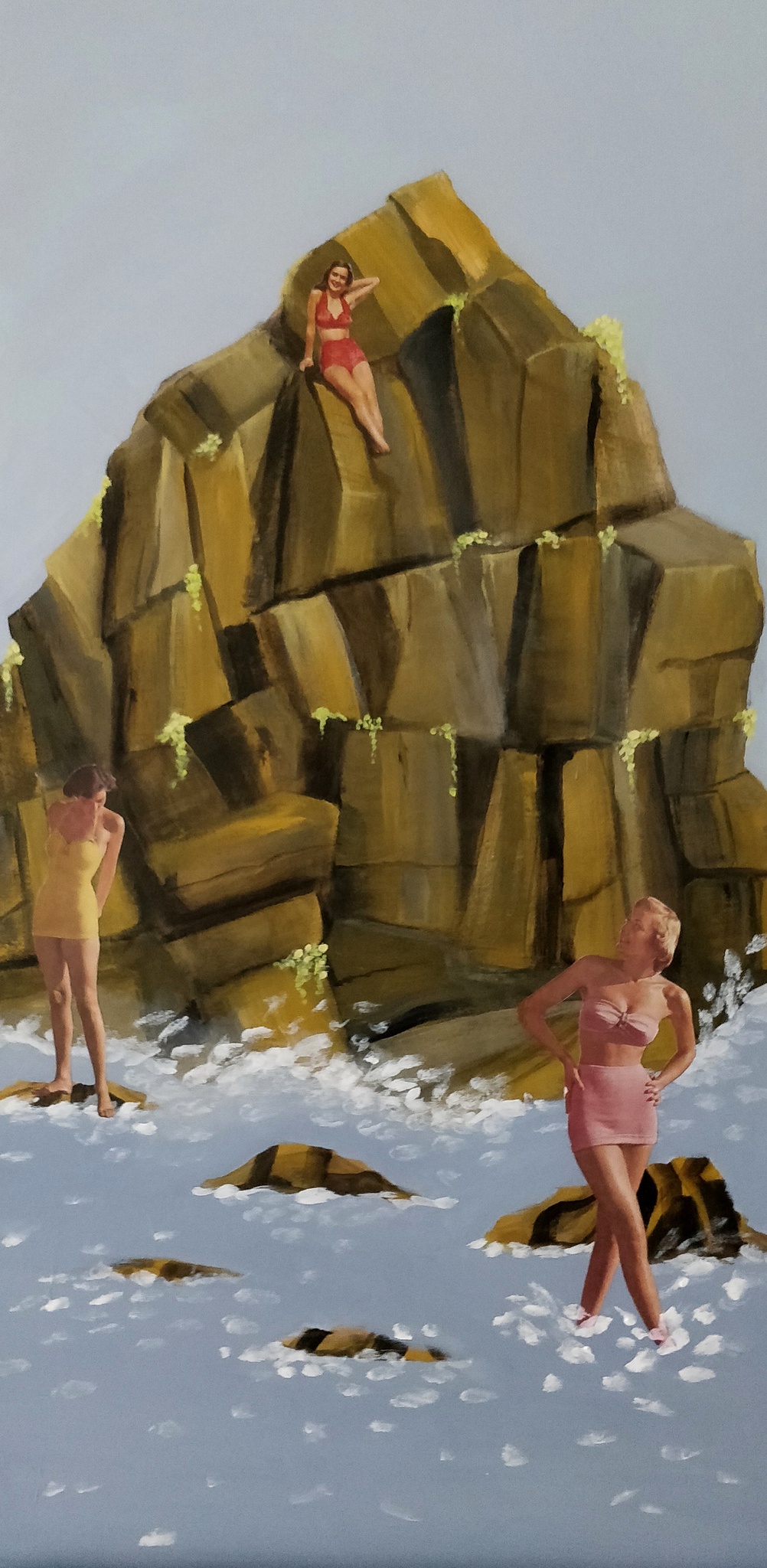 Vrouwen Zee Water Rots Vakantie Samen Spanje Berg Rotsblokken Hoog Feminisme Emancipatie Sixties Relaxen Klimmen Badkleding