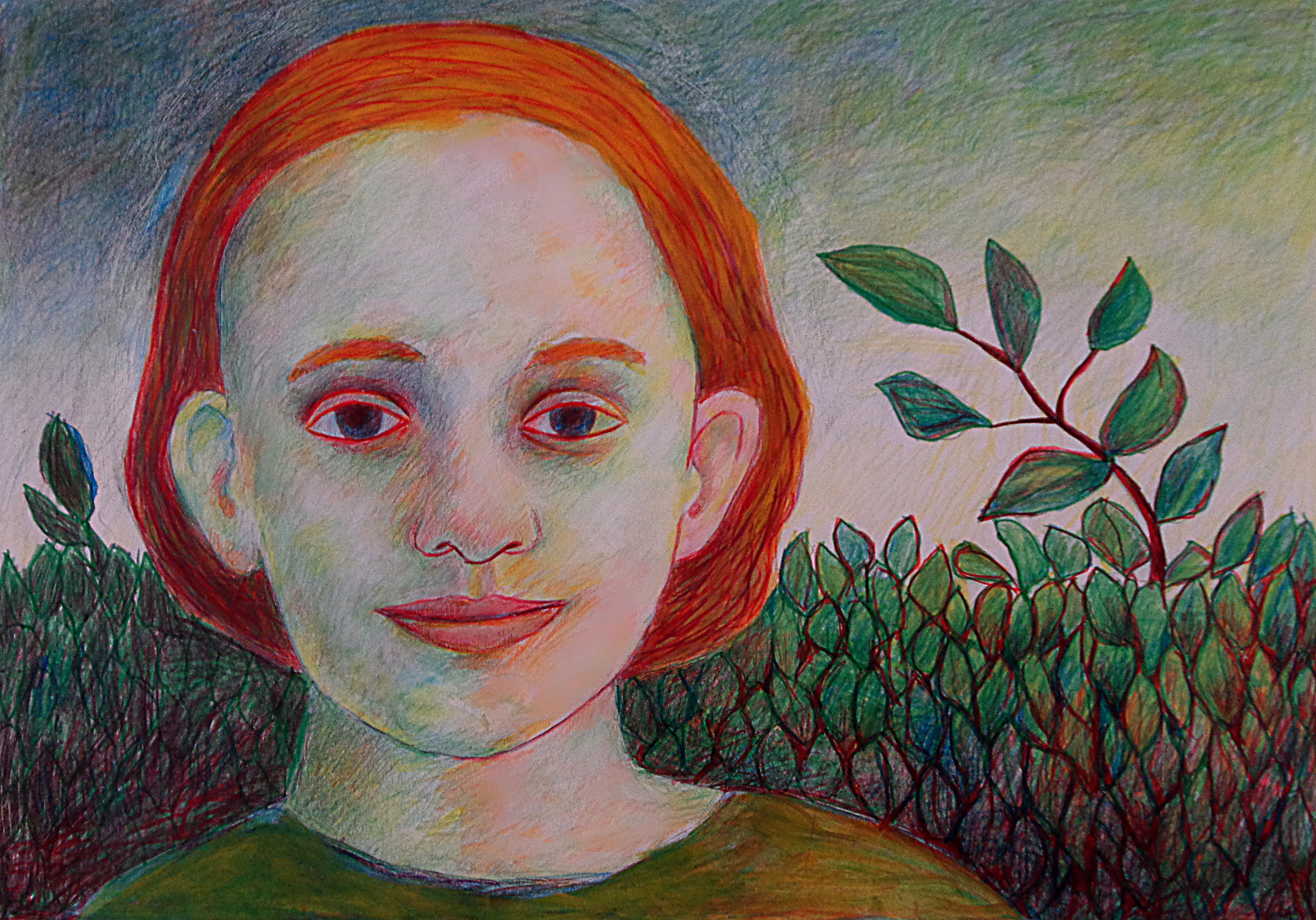 Vrij werk in kleurpotlood en stift