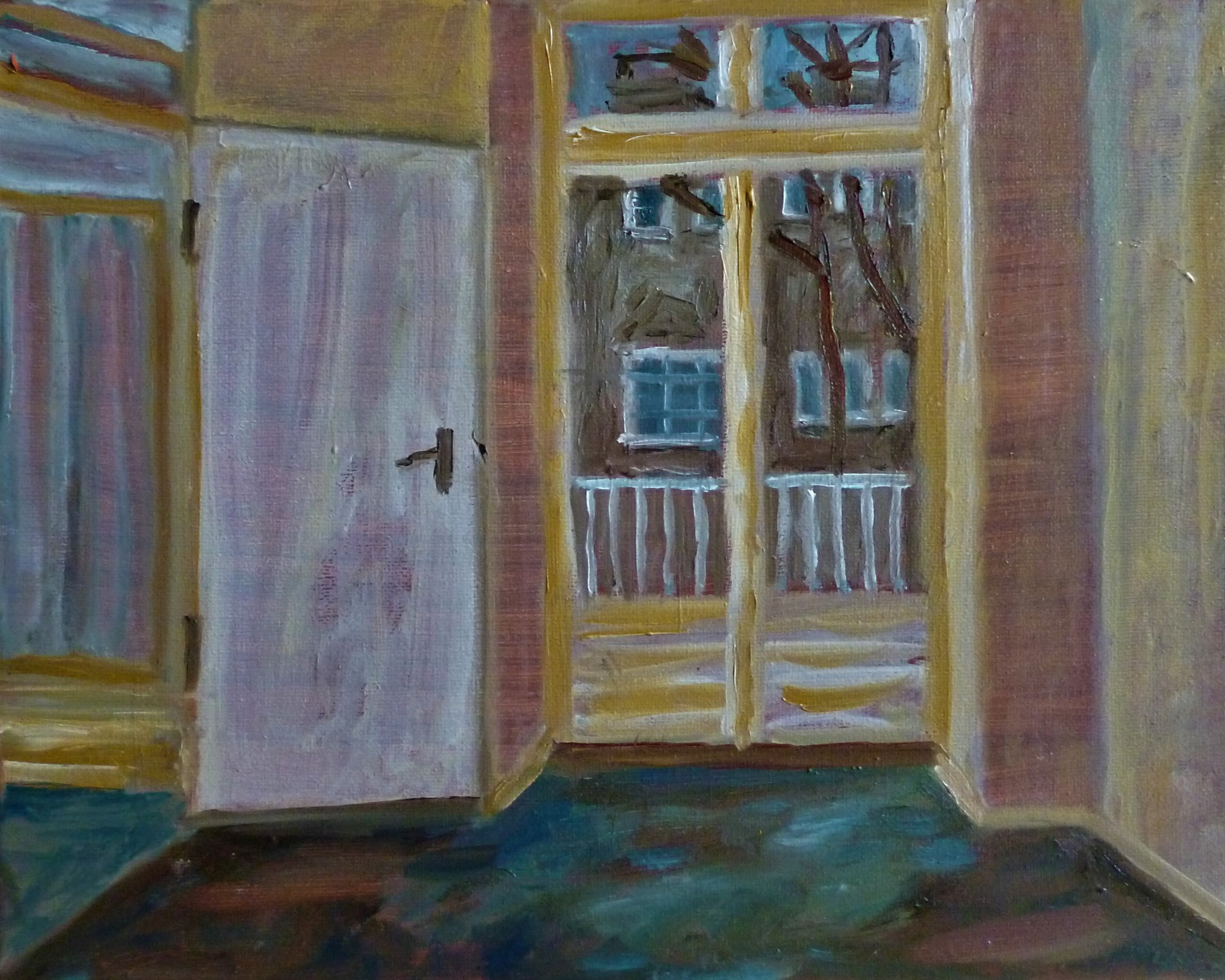 Interieur met groene vloer.