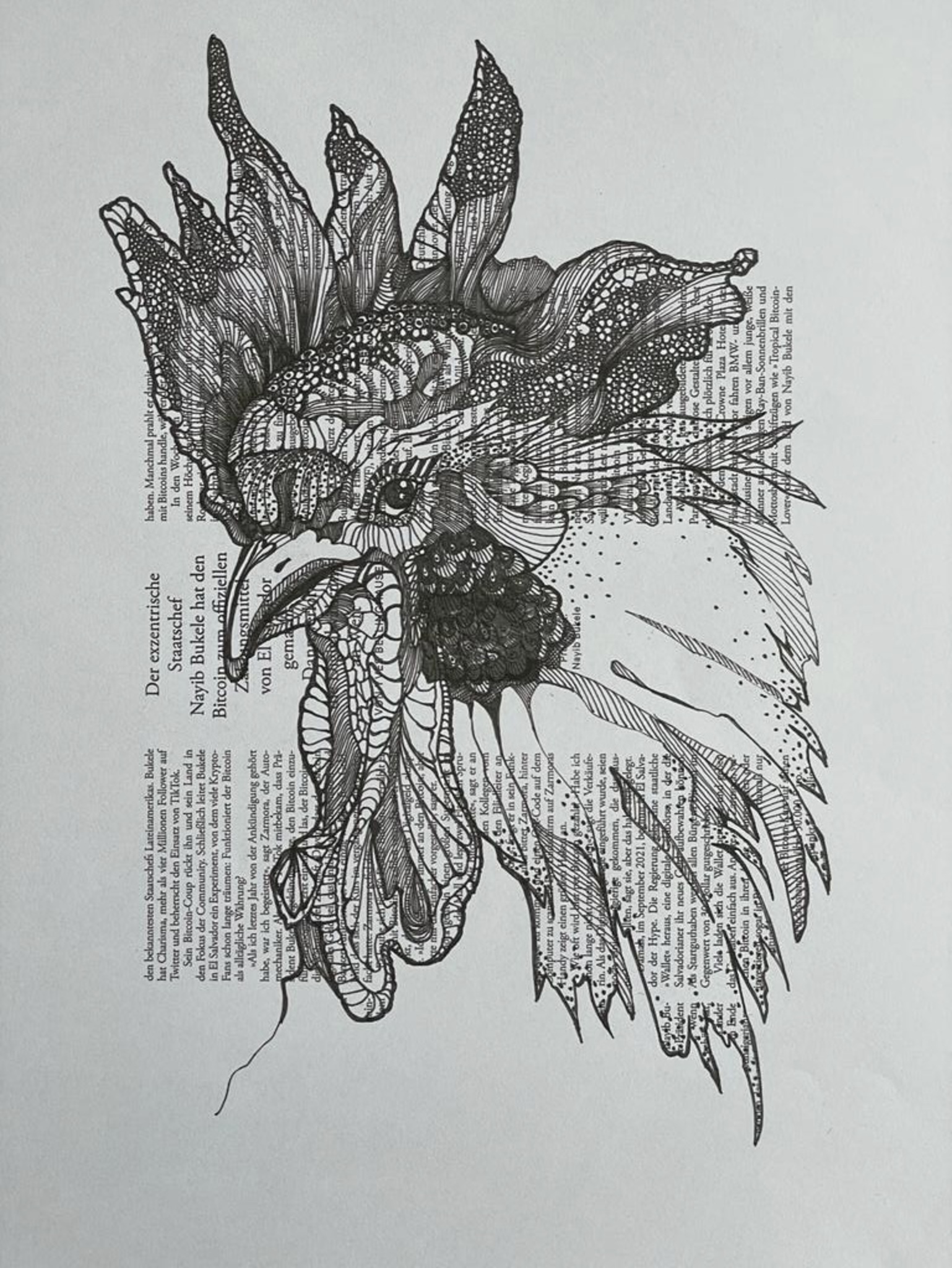 zwart wit krantenknipsel pentekening