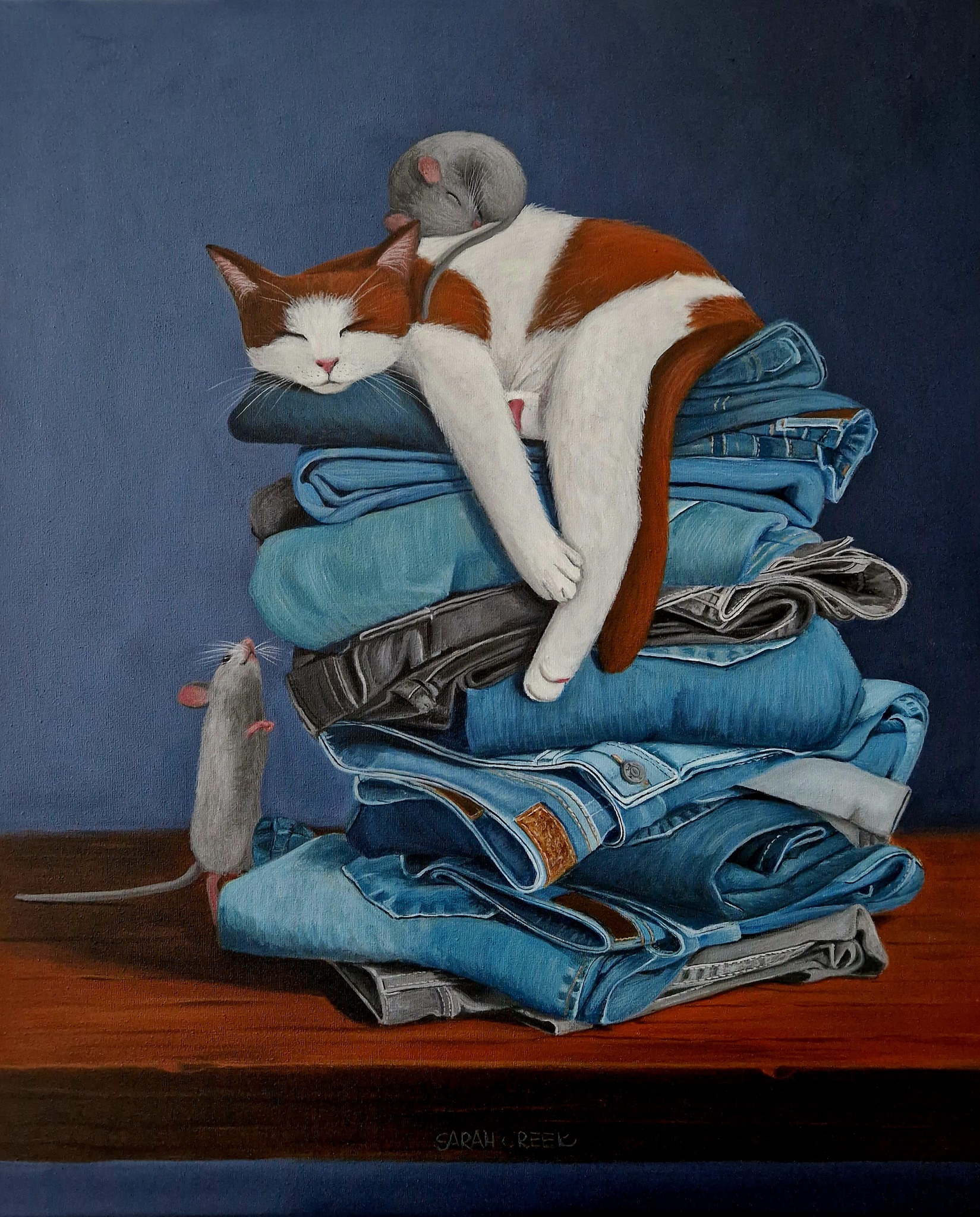 Sarah Creek schildert met acryl op canvas of linnen. Onderwerpen zijn portretten en stillevens. Sarah geeft les aan 55 talentvolle cursisten in een atelier aan huis.